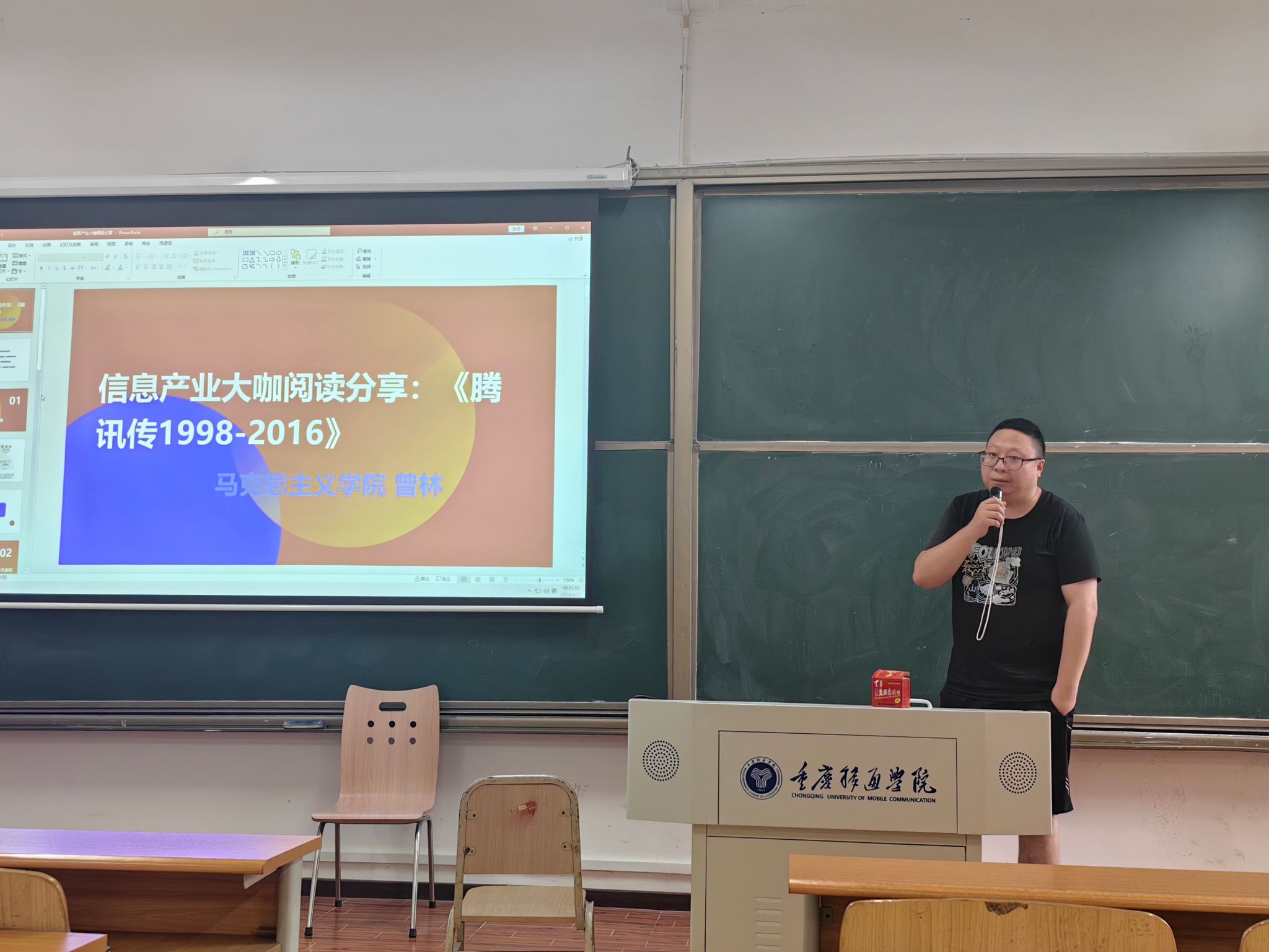 2024年9月25日15点30分,马克思主义学院中国近现代史纲要教研室为贯彻落实学校“信息产业大咖阅读”计划,在7208教室开展了一场生动的阅读分享会,此次分享会由曾林老师主讲,他通过解读《腾讯传1998-2006》一书,为教师们带来了腾讯及其创始人马化腾的奋斗发展历程,为教师们的工作和教学提供了宝贵的启示。