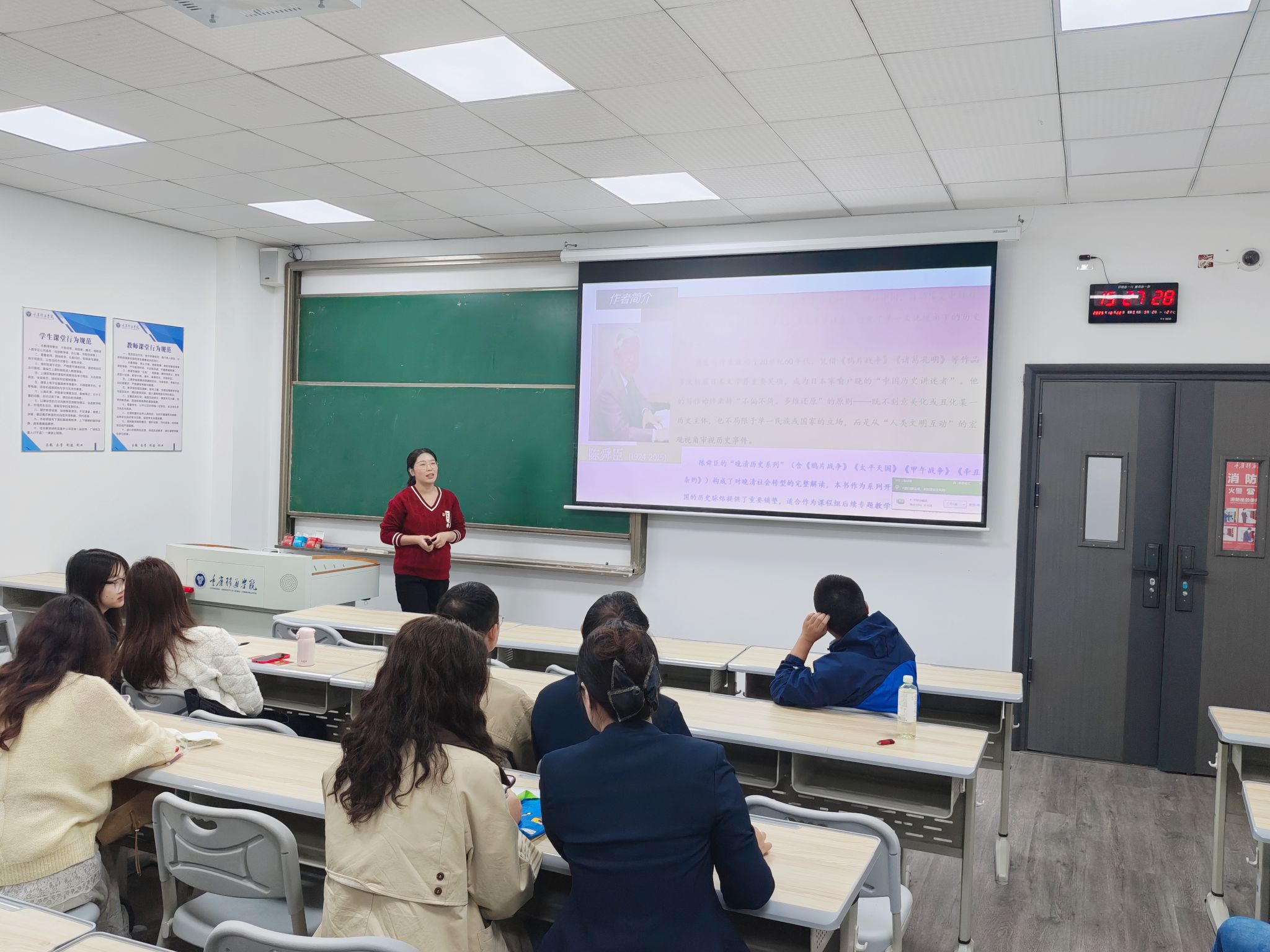 为进一步丰富《中国近现代史纲要》课程的教学资源,提升团队教师的历史思辨能力与教学创新水平,10月22日15时,《中国近现代史纲要》课程教学团队于4105教室开展了第十九期“史海拾贝”读书分享活动。此次活动由靳银霞老师担任主讲,团队教师共同参与。