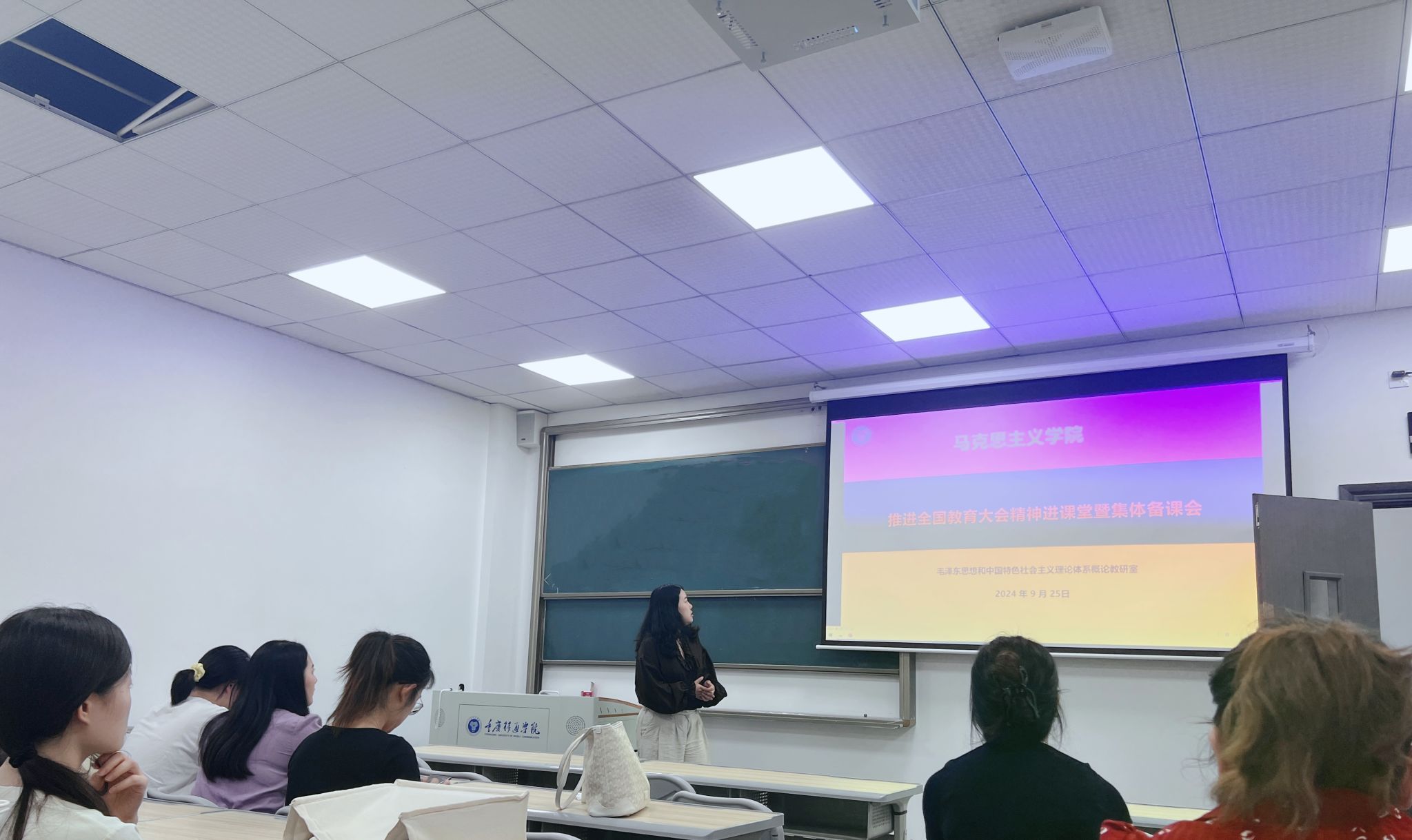 为深入学习贯彻全国教育大会精神,及时将党的创新理论融入课程教学,坚持思政课建设与党的创新理论武装同步推进,推动思政课内涵式高质量发展。2024年9月25日,马克思主义学院“概论”课教研室组织开展了推进全国教育大会精神进课堂暨集体备课会。本次会议由教研室主任毕毓璟老师主持,教研室全体教师参加。