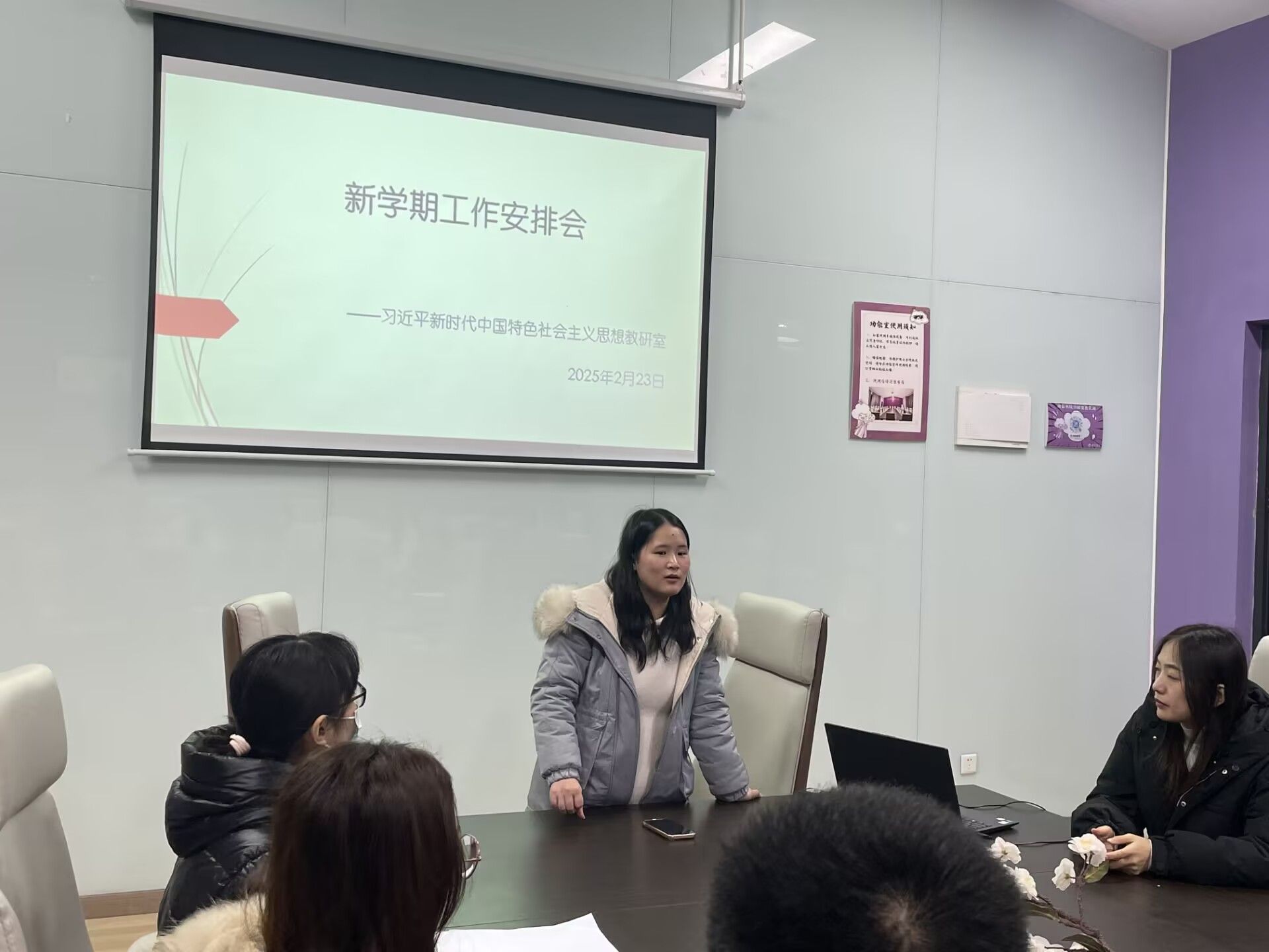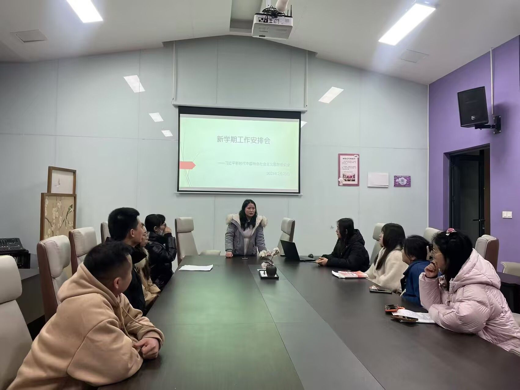 2025年2月26日,春风送暖,万物复苏,为确保新学期教学工作高效启动,马克思主义学院习近平新时代中国特色社会主义思想概论教研室在观云书院的小雪会议室召开了新学期工作部署会,本次会议由教研室主任吴雪娇老师主持,教研室全体教师参加。