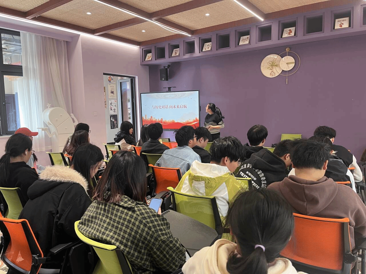 2025年4月9日,习近平新时代中国特色社会主义思想概论教研室与史学社联合组织了以“与历史对话,向未来启航”为主题的大学生校园红色文化探寻活动。本次活动由罗娅老师和卫峥妮老师组织,史学社社团成员参与。