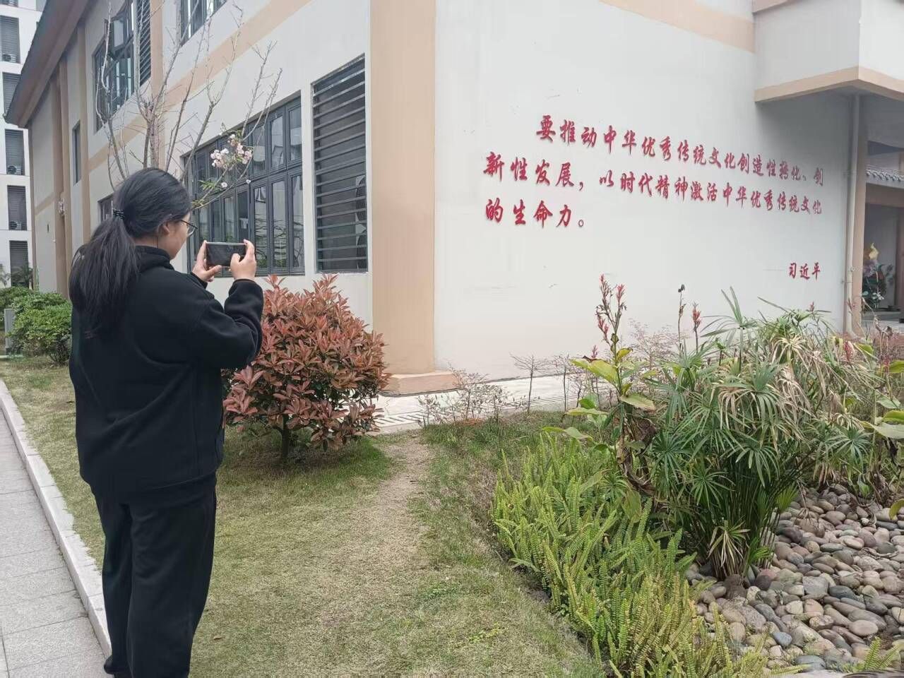 活动过程中,学生们积极探寻校园内的红色印记,他们或拍照记录,或相互交流感悟,现场气氛庄重而热烈。罗老师强调:“红色文化不是书本上的文字,而是活生生的历史。通过今天的活动,希望大家能够真正感受到红色文化的魅力,让红色精神在心中生根发芽。”学生们在老师的启发下,纷纷表达了自己对红色文化的理解和感悟。