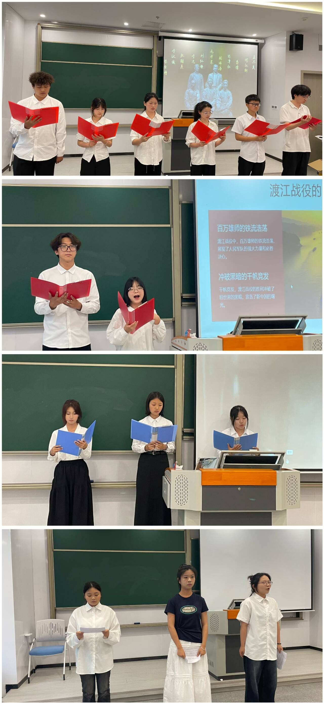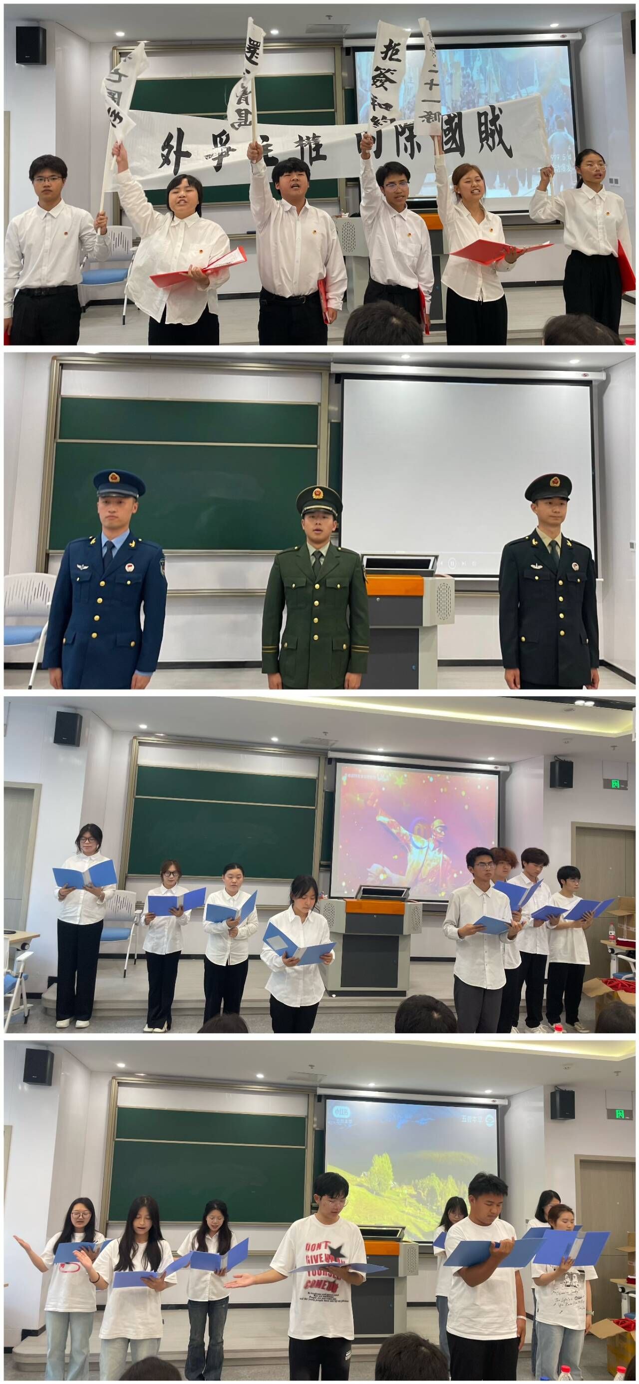 在诵读过程中,同学们还巧妙地融入了音乐、视频等多种元素,进一步增强了作品的表现力和感染力。激昂的旋律适时奏响,与同学们充满力量的诵读完美契合,饱含深情的语句似有千钧之力,直抵人心。