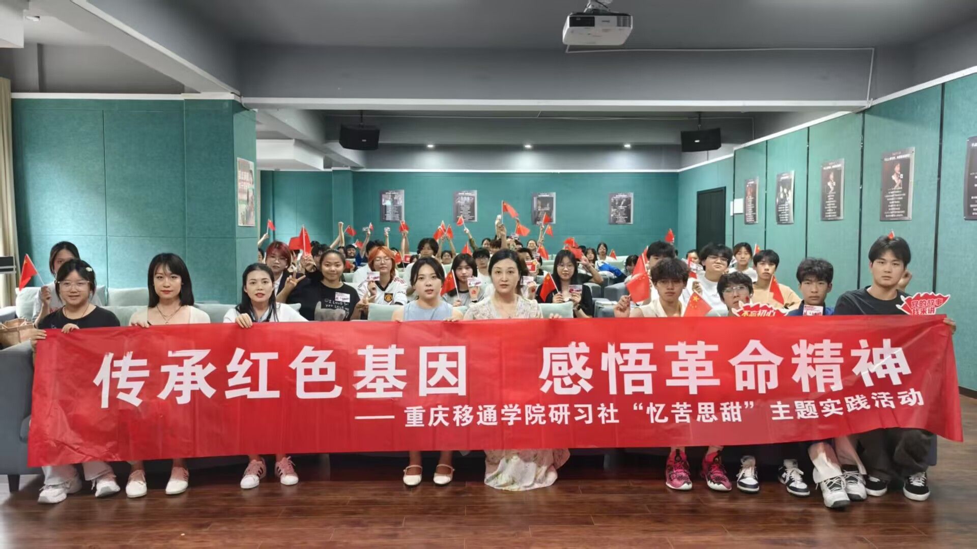 为进一步激发青年学子坚定理想信念,不忘初心使命,5月23日中午1点半,由马克思主义学院指导的习近平新时代中国特色社会主义思想研习社与远景学院党支部联合在爱莲书院一号楼多功能音影室,组织开展了“传承红色基因、感悟革命精神”的革命精神主题教育活动。通过“情景再现+沉浸体验+互动分享”的创新形式,80余名师生在历史穿越中体悟革命精神,在实践教育中厚植家国情怀。