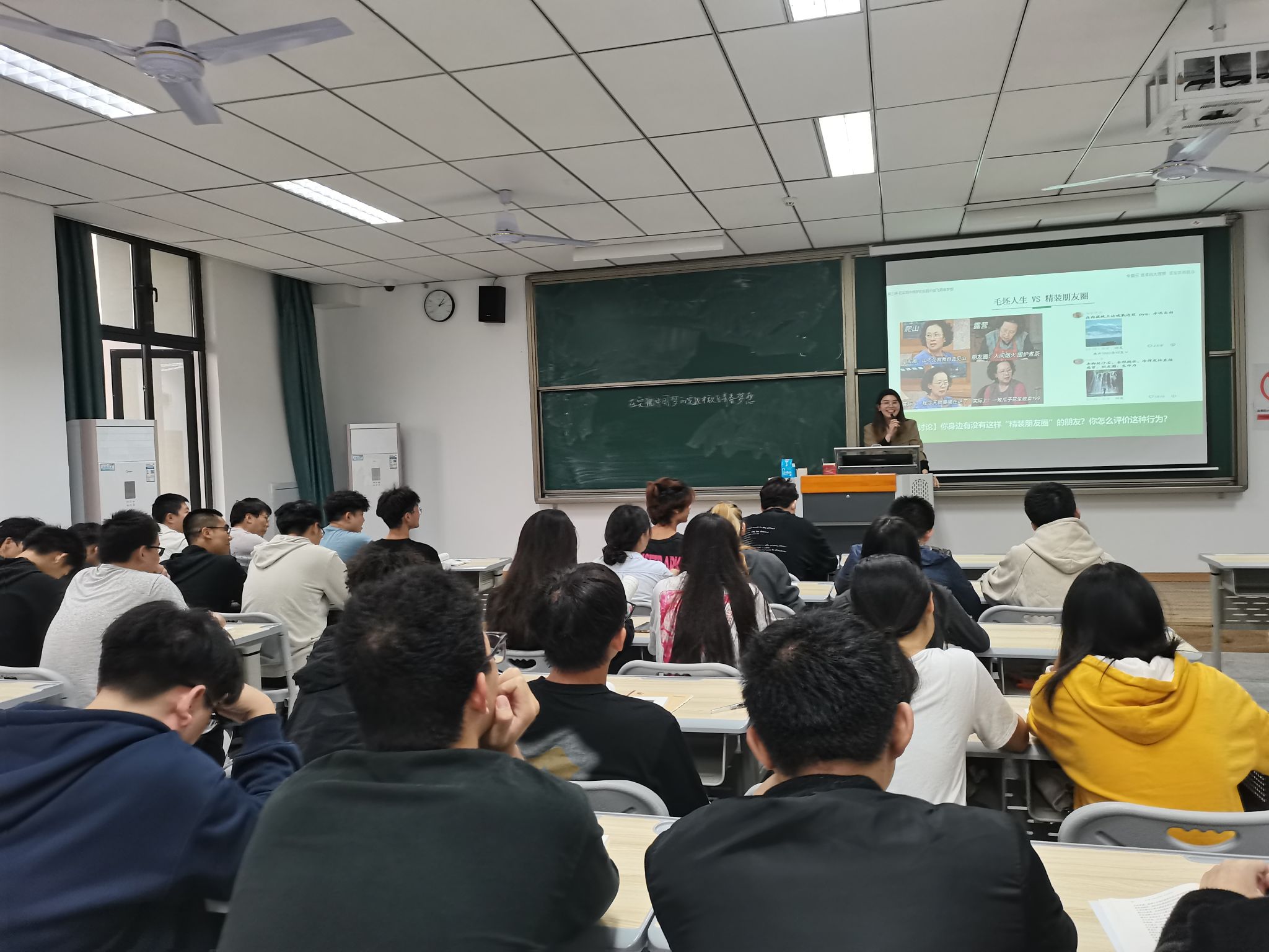 为加强思政课教师队伍建设,提高教师教学能力素养,帮助新教师站稳讲台,着力构建有效型课堂,提升课堂教学质量。2024年10月31日,马克思主义学院于仁者楼501教室开展新教师听评课活动。此次听评课由马克思主义学院马克思主义基本原理教研室主任陈静副教授、陶辉副教授、吴雪娇等老师参与。