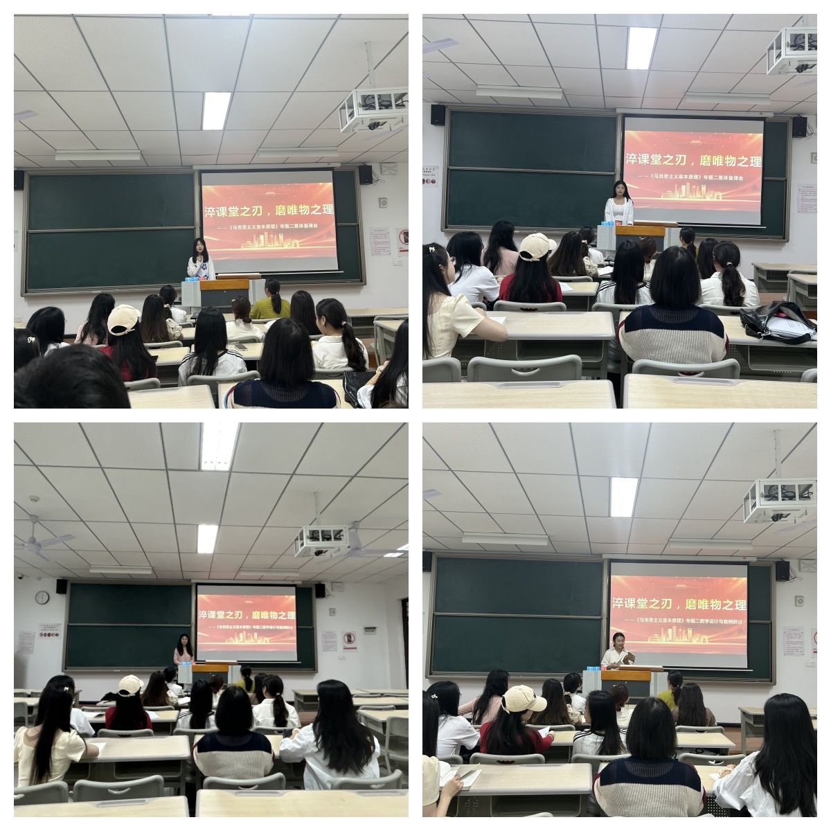 为进一步提升课程的思想性、理论性与亲和力,着力破解教学中存在的重点难点问题,提升课堂教学质量,2025年9月24日,綦江校区《马克思主义基本原理》课程组在仁者楼307开展了磨课活动。本次活动由潘家玲老师主持,课程组全体老师参与研讨。