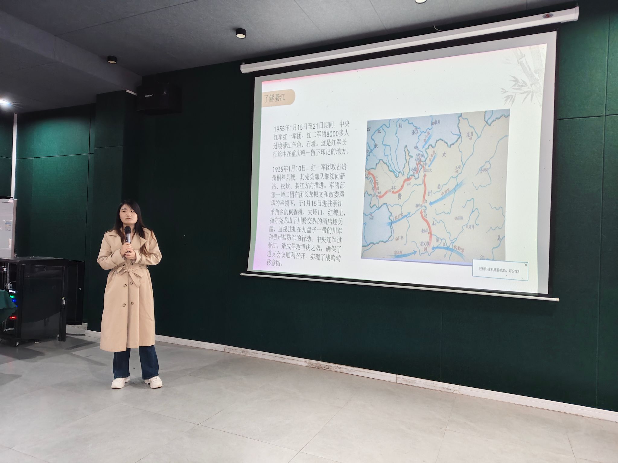 为进一步深化大学生对綦江红色文化的认知与理解,弘扬其独特魅力,传承红色精神,激发广大青年学生的爱国情怀与社会责任感,2024年10月30日,一场主题为“重走长征路,探红军綦江足迹”的红色文化研学坊活动在綦河书院星云·影音视举行。本次活动由马克思主义学院的王奕丹与冯媚两位老师精心策划并主持,吸引了来自大数据、大健康、新媒体技术等学院的学生代表20余人积极参与。