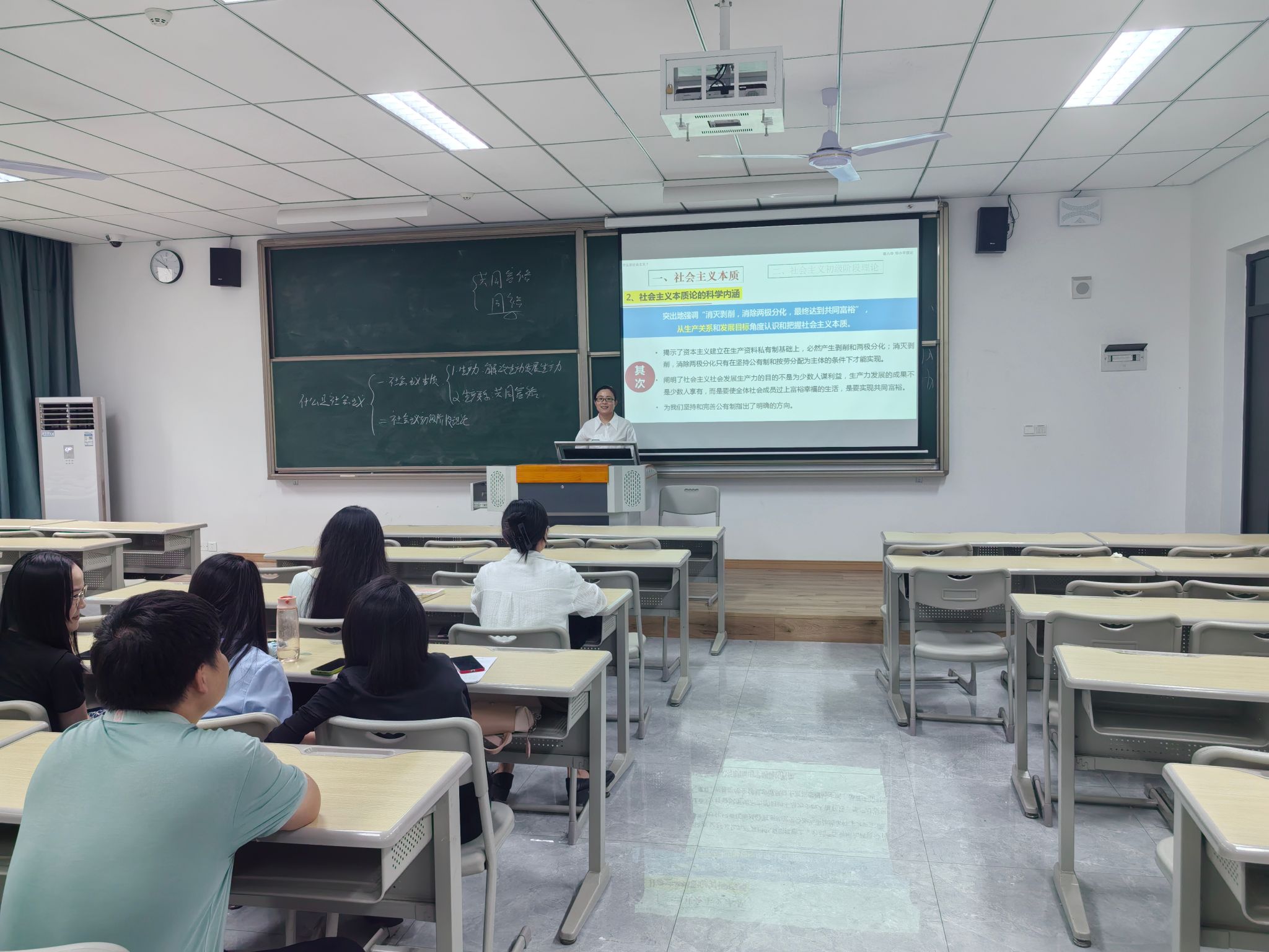 本次示范课聚焦《毛泽东思想和中国特色社会主义理论体系概论》第六章的核心内容“邓小平理论首要的基本的理论问题”。王郡老师以“什么是社会主义”为切入点,通过播放展示我国经济增长变化的动态视频,直观呈现了我国生产力大力发展的辉煌成就,并深刻诠释了社会主义制度的优越性。结合我国基本国情,王老师详细阐述了社会主义初级阶段理论。其教学思路严谨缜密,语言凝练精准,从概念阐释到案例剖析,教学设计环环相扣、层层递进,知识点由浅入深、循序渐进,展现了深厚的学术功底与精湛的课堂驾驭能力。