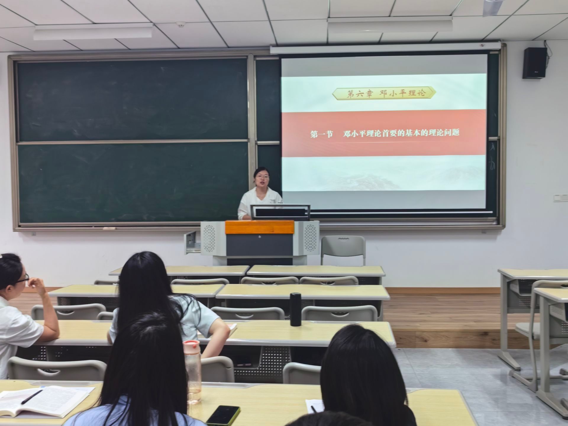 杨丽娟老师则采用“邓公下乡视察”的视频作为导入,直击“什么是社会主义、怎样建设社会主义”这一核心理论问题。她从理论维度、历史视角、实践经验三个层面深入分析,揭示认清社会主义本质的重要性。授课过程中,杨老师的逻辑严密、论述精辟,以严密的理论架构筑牢知识根基,同时融入生动的时代案例,激发师生们的思维共鸣,展示了扎实的理论素养与创新的教学智慧。