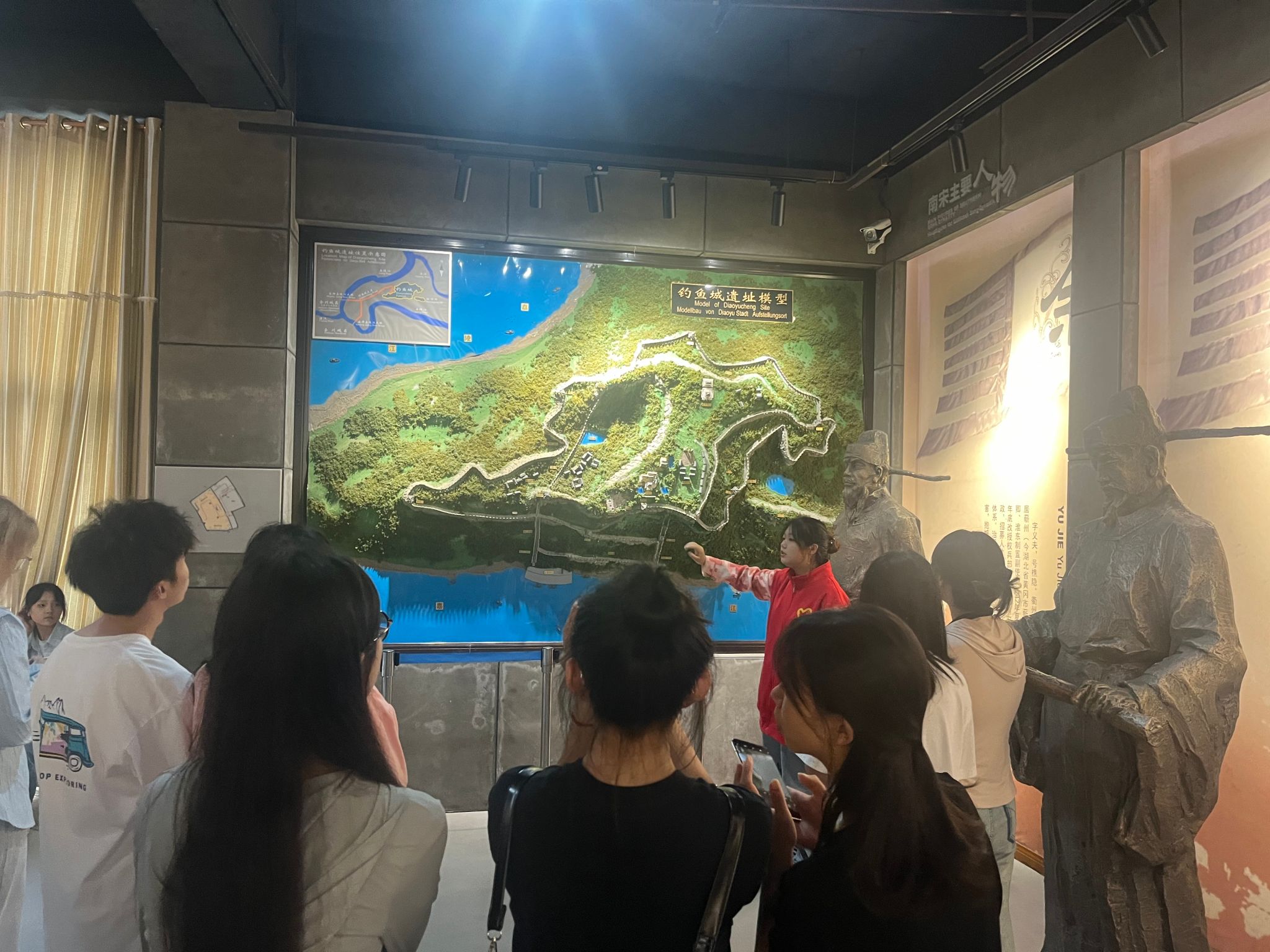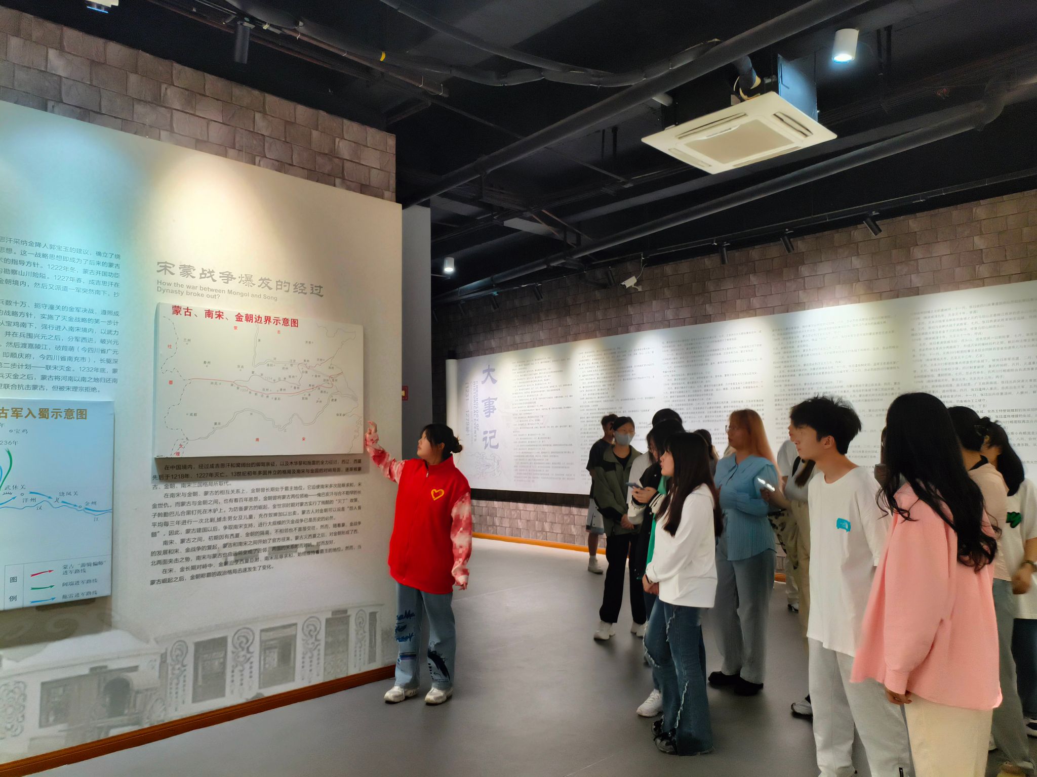 活动开始,讲解员带领同学们漫步一楼序厅,生动讲述了钓鱼城战役的历程,“钓鱼城之战”是发生在13世纪蒙古与南宋之间的生死之战。这场战役长达36年,创下了中外战争史上罕见的以弱胜强的战例,改写了整个欧亚大陆的历史。