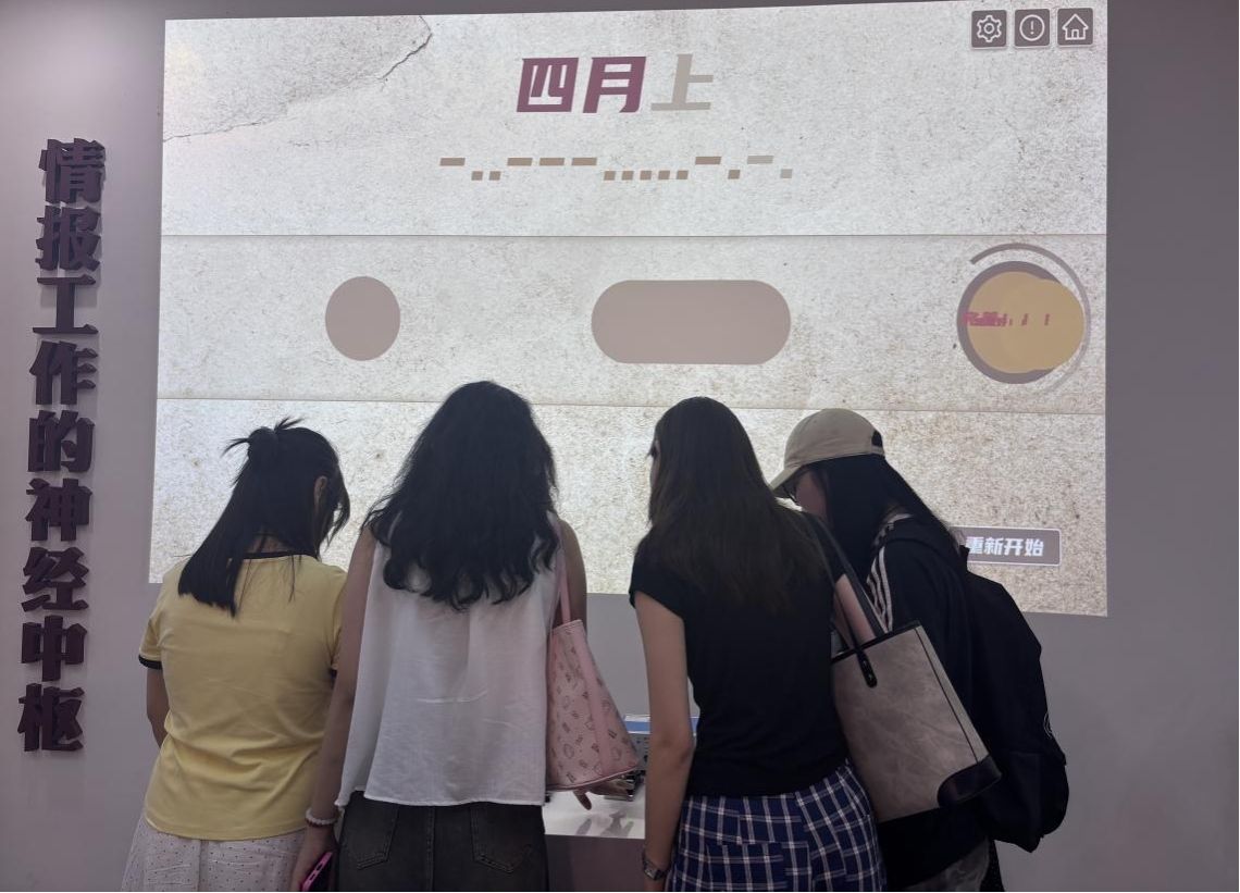 在讲解员的引导下,师生们走进“红色通信历史长廊”,通过全息投影和动态影像,直观了解了通信兵在极端环境下架设线路、传递情报的艰辛历程。随后,现场师生分组体验了多个沉浸式项目。在“深山里架起的‘信息高速路’”中,学生戴上VR设备,化身通信兵,在虚拟场景中完成高难度任务,感受技术突破的震撼;在“情报工作的破解电报”环节,通过模拟电报机和解密程序,大家亲历了历史中惊心动魄的情报战;而“半部电台”互动展区则以实物复原和AR技术结合,再现了革命年代通信设备的简陋与伟大,大家通过沉浸式体验,深切体会到“一部电台抵千军”的战略意义。