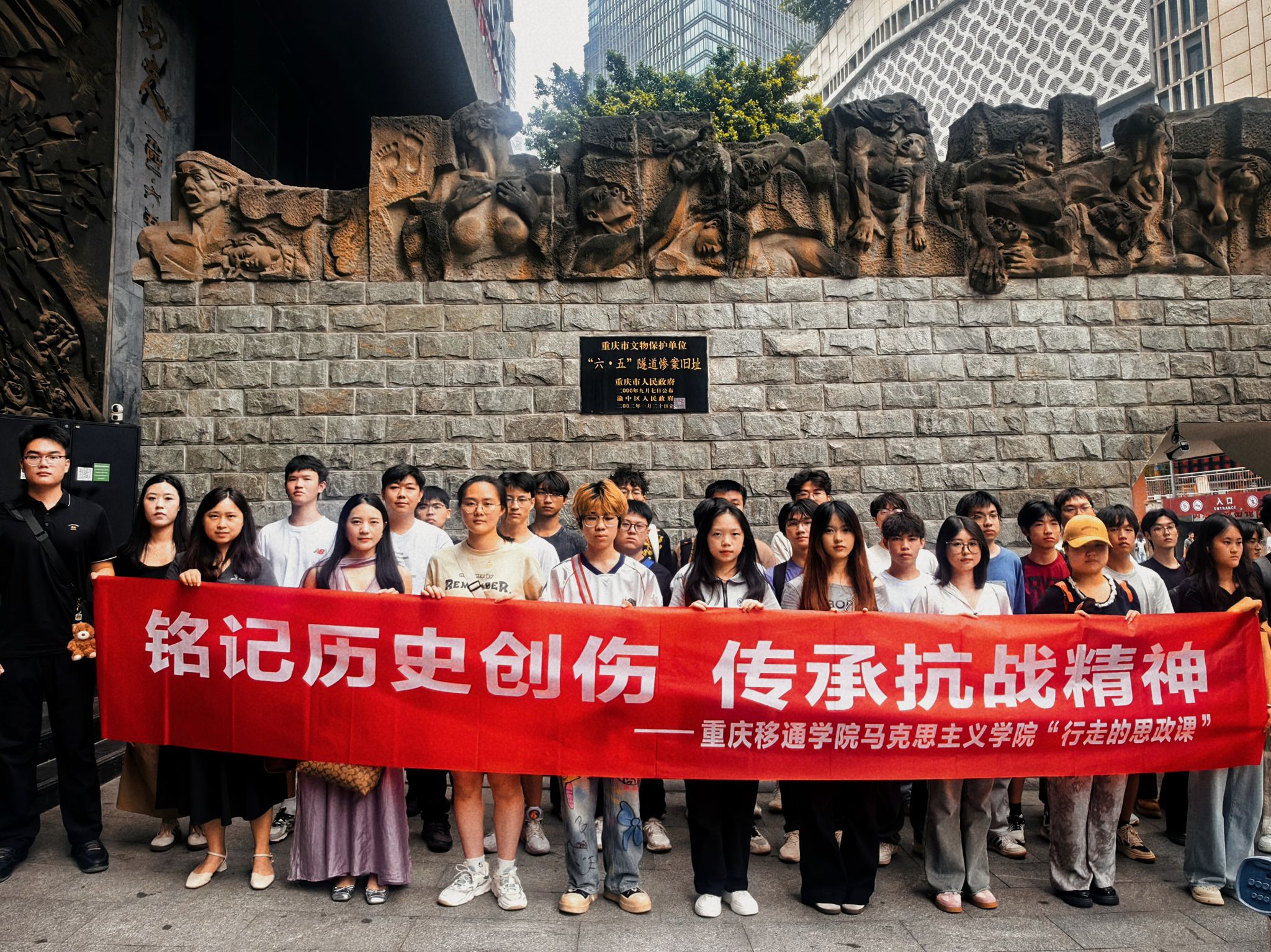为纪念抗日战争期间在“重庆大轰炸”中不幸遇难的同胞,激发我校师生的爱国热情,引导广大师生铭记历史,传承和弘扬伟大的抗战精神。6月6日下午,马克思主义学院组织师生赴重庆大轰炸惨案遗址开展“铭记历史创伤,传承抗战精神”为主题的“行走的思政课”。本次活动由马克思主义学院毕毓璟、廖洪瑶、肖爱玲、任捷雅四位老师及各专业学生代表共计37 人参与。