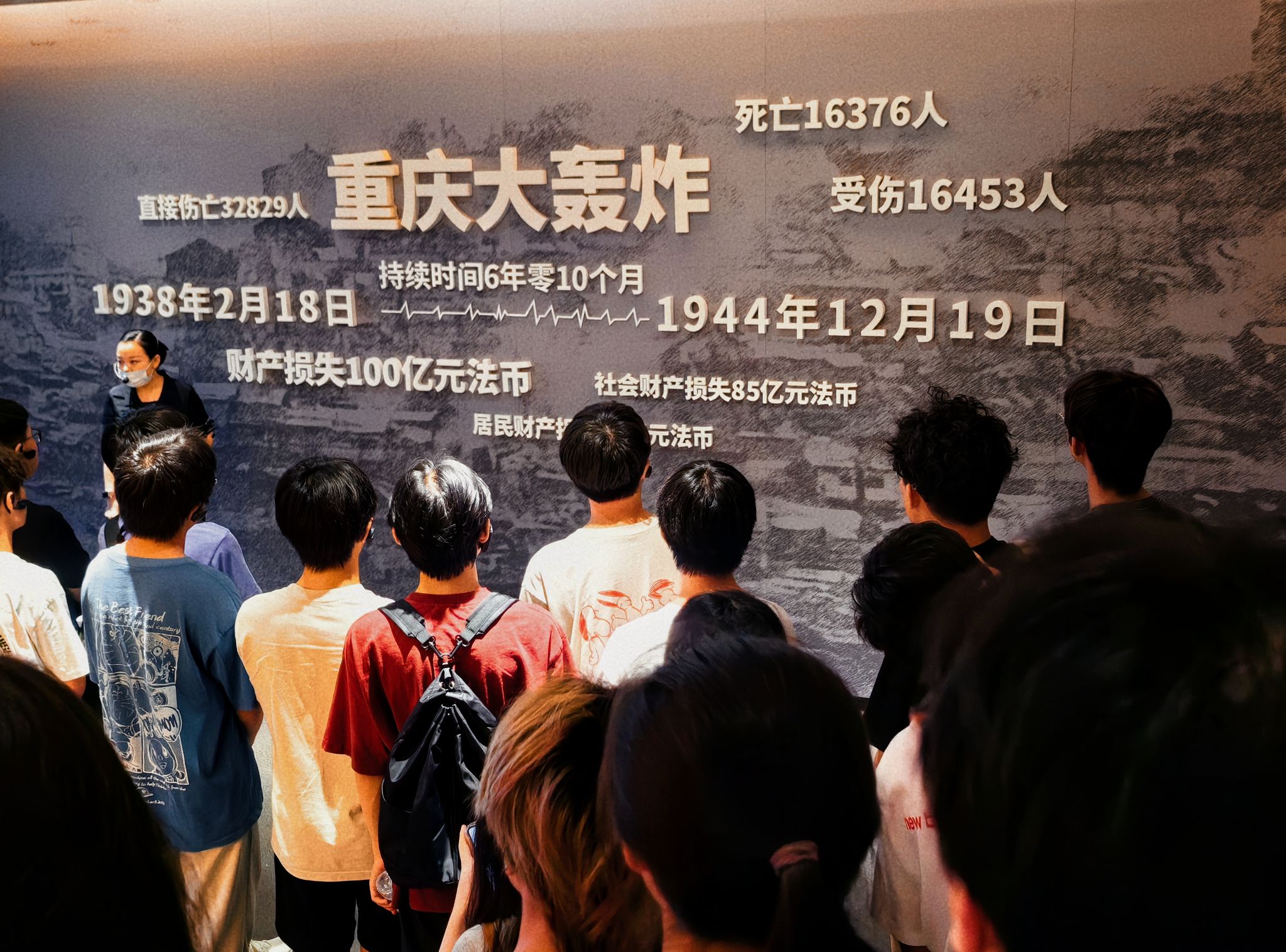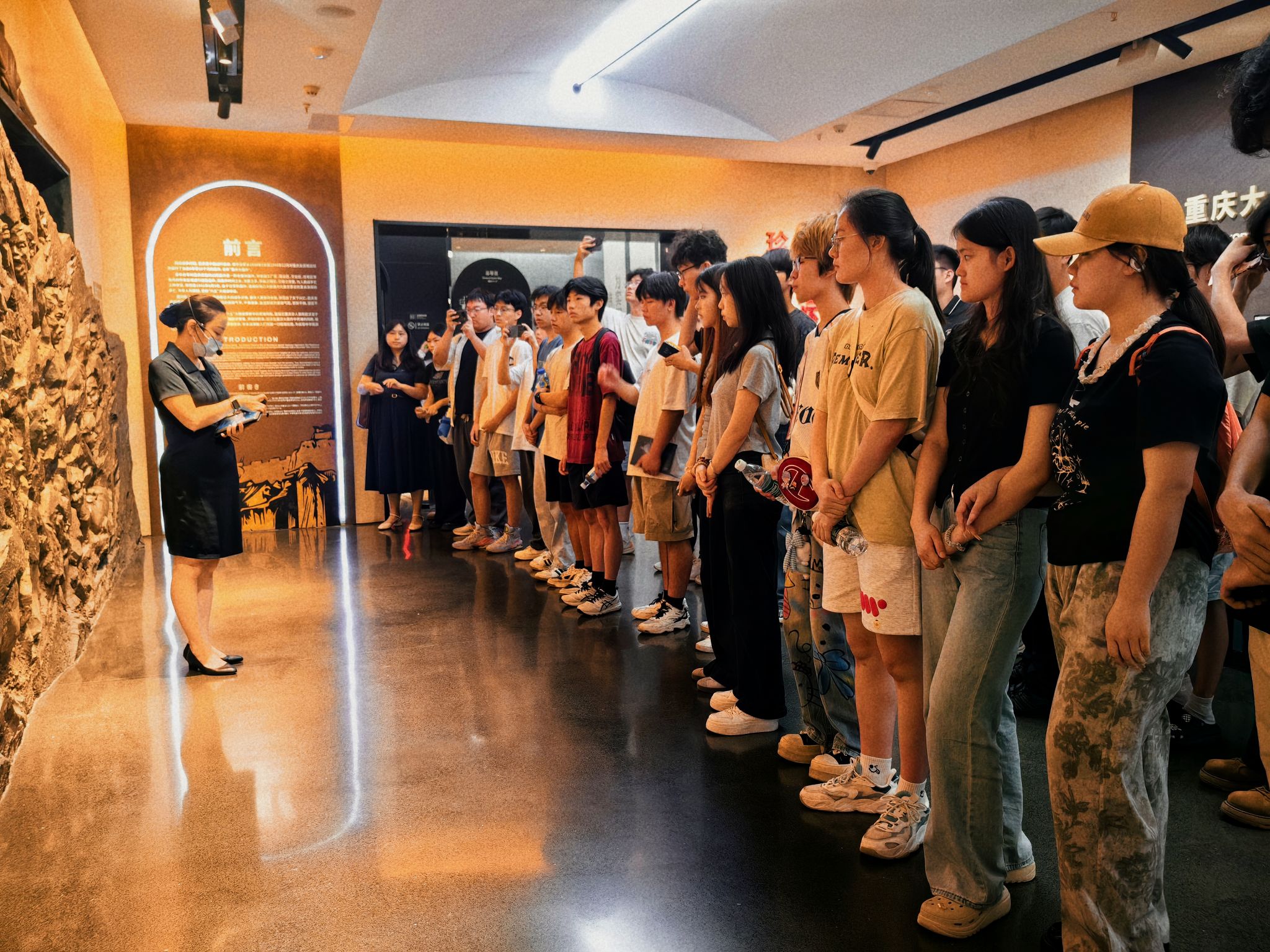在讲解员的带领下,师生在“空中屠杀”展厅深切感受侵华日军对重庆实施大轰炸的惨烈场景;在“六·五”惨案展厅则了解了大隧道惨案的酿成过程;在“愈炸愈强”展厅感受重庆人民在轰炸中展现出的坚强与不屈;在“时空记忆”展厅,通过场景再现的方式,铭记勿忘历史;最后,在“后记”展厅对这段历史进行了深刻反思与总结。