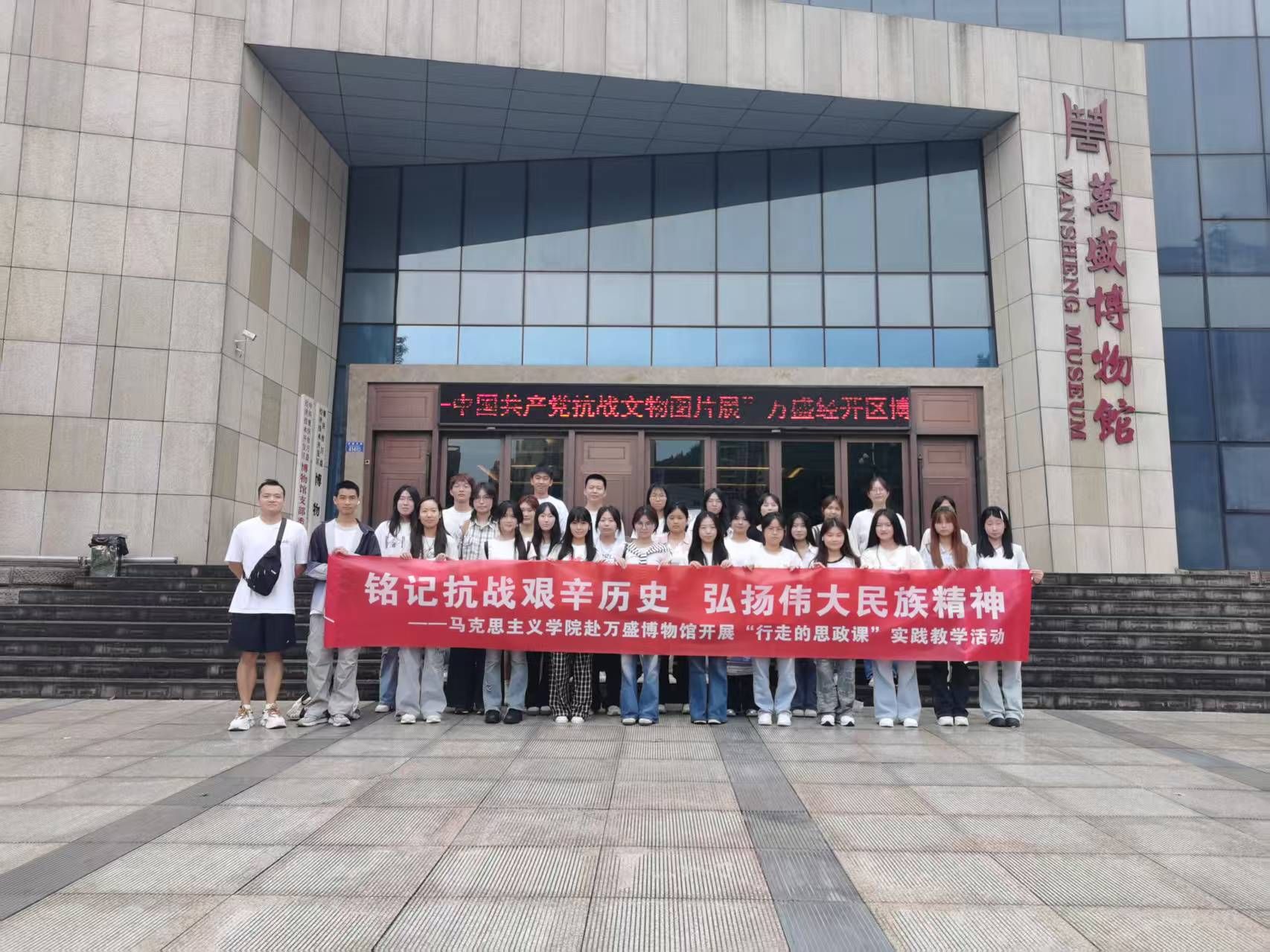 为创新思想政治理论课教学模式,深化爱国主义教育。2025年9月12日下午,重庆移通学院马克思主义学院(綦江校区)陈安鹏、段莉两位老师组织师生代表30余人前往重庆市万盛经开区博物馆,开展了一场以“铭记抗战艰辛历史 弘扬伟大民族精神”为主题的“行走的思政课”实践教学活动。