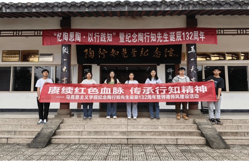 2023年10月18日是陶行知先生诞辰132周年,为深切缅怀陶行知先生,大力弘扬陶行知教育思想,加强师德师风建设,弘扬“捧着一颗心来,不带半根草去”的高尚廉洁精神,同时让学生深入了解行知文化,并践行于日常学习生活中。10月18日下午,马克思主义学院“概论”课教研室组织教师及部分学生代表赴陶行知先生纪念馆开展纪念陶行知先生诞辰132周年暨师德师风建设活动。