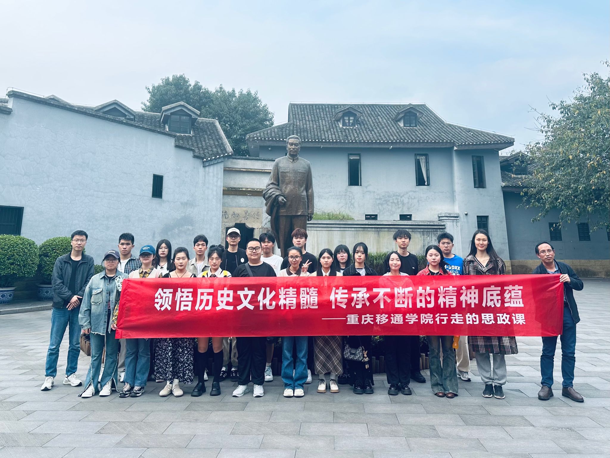 为学习贯彻“大思政课”建设要求,善用社会大课堂启智润心,缅怀党的光辉历史,传承革命精神,弘扬爱国主义。3月27日14时,由马克思主义学院联合鱼城书院开展了“行走的思政课”第六期活动。马克思主义学院毛光晨、刘亚鹏和鱼城书院李欣然三位老师带领21名同学前往重庆市周公馆实践考察。