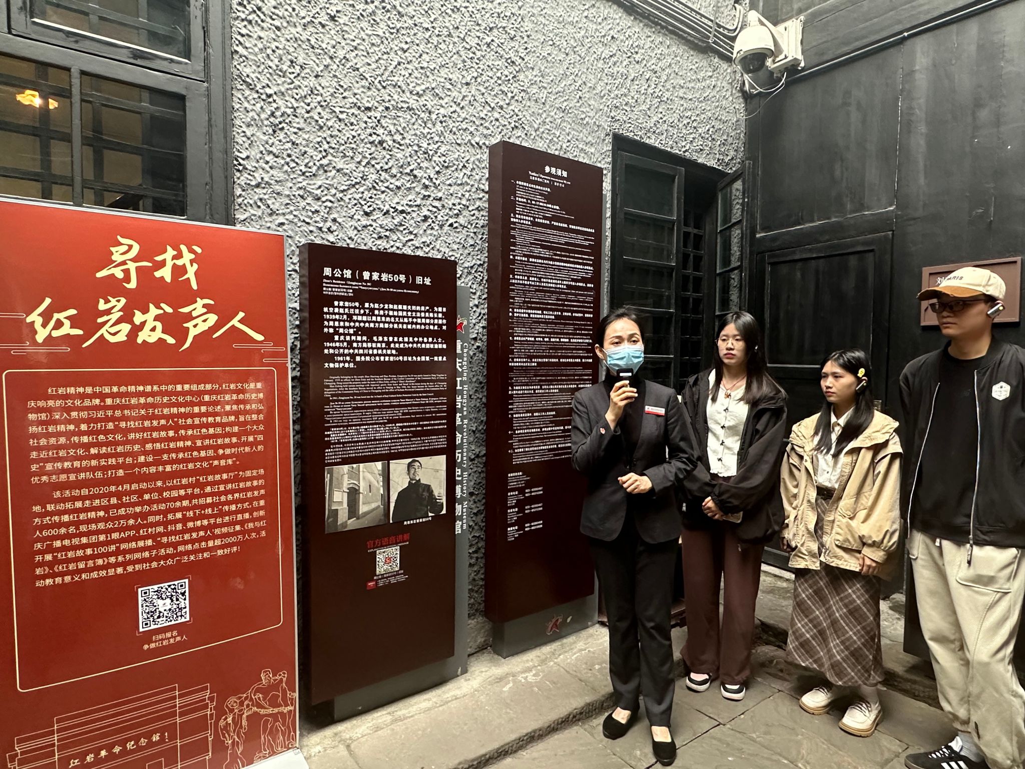 重庆市周公馆不仅是中国共产党在国民政府陪都中心的战斗堡垒,也是中国共产党抗日民族统一战线的前哨阵地,更是每一个中国人无比向往的革命圣地。到达周公馆门前,师生们有序列队,伴随着讲解员的介绍了解到周公馆不平凡的历史。通过公馆外的文字资料,师生们更是清楚了周恩来总理曾在这里生活了八年,为团结统一、实现民主事业奋斗了八年,埋下了“红岩精神”的种子。