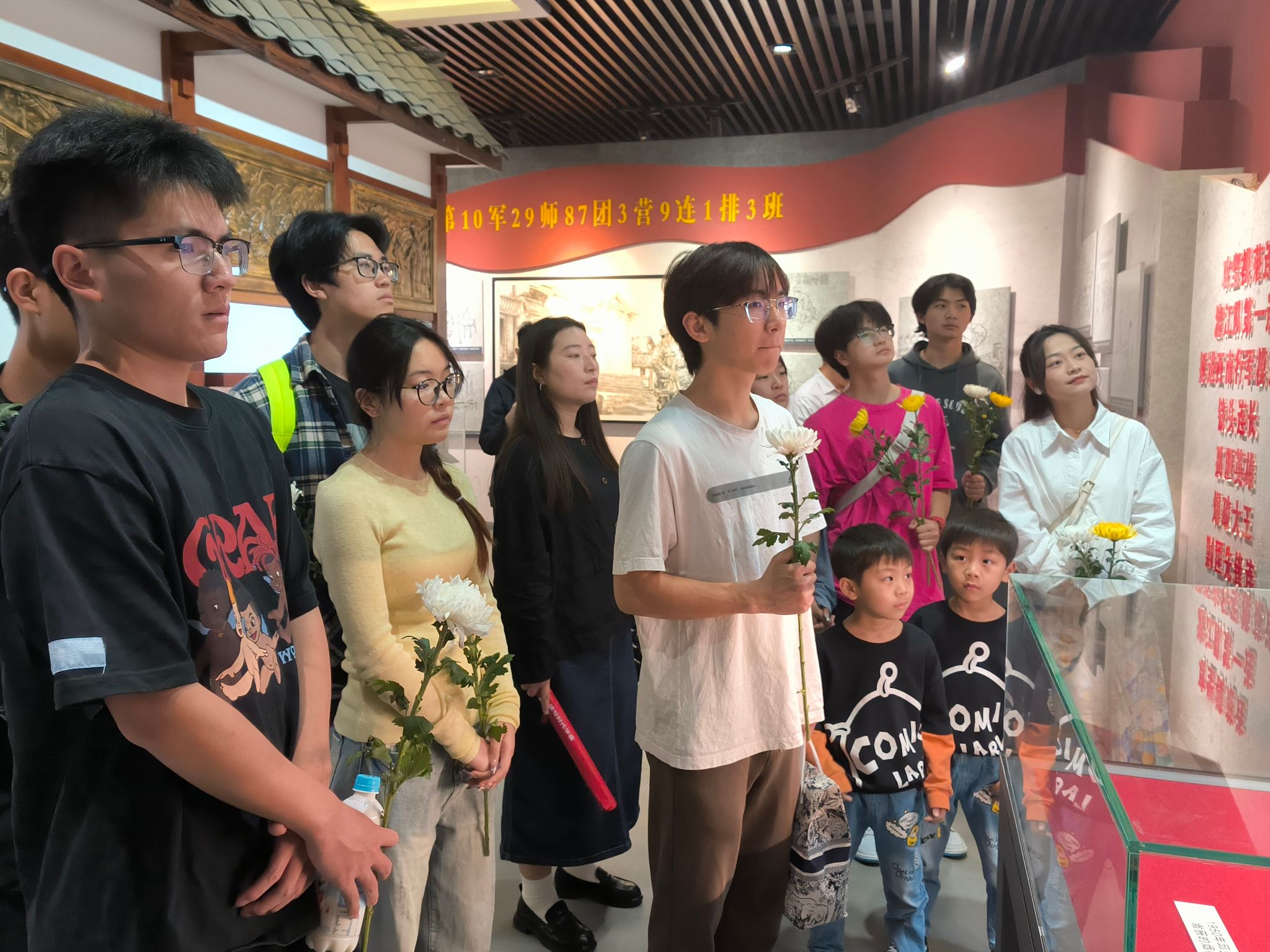 活动当天,阳光明媚、微风拂面,讲解员带领同学们回顾了邱少云烈士的光辉事迹,师生们迈着庄重的步伐,走过馆里的每个角落,感受着英烈的一生。讲解结束后,全体人员保持肃立,向邱少云烈士默哀三分钟,随后,师生们手持鲜花,依次走向邱少云烈士的雕像前,敬献鲜花并深深鞠躬。每一朵鲜花都代表着对英雄的崇高敬意,每一次鞠躬都凝聚着对英雄精神的传承与发扬。