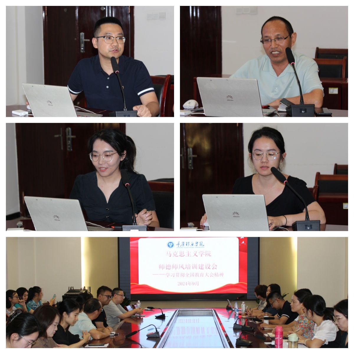 会上,中国近现代史纲要教研室主任李阳副教授根据全国教育大会的精神和要求,对大家进行了一场师德师风培训;毛光晨、李潇潇、张慧婷三位老师也根据暑期培训对大家开展了一场生动的培训分享会。