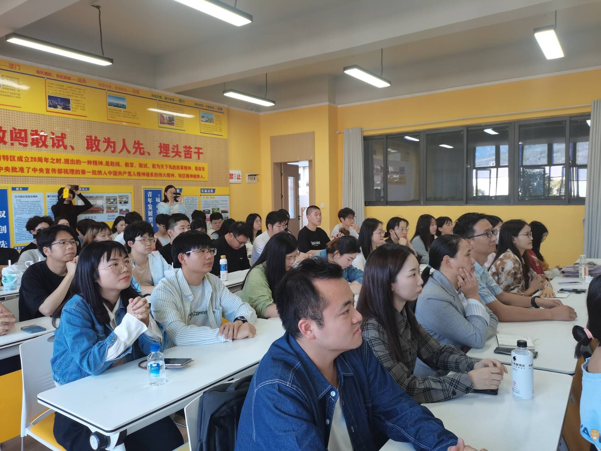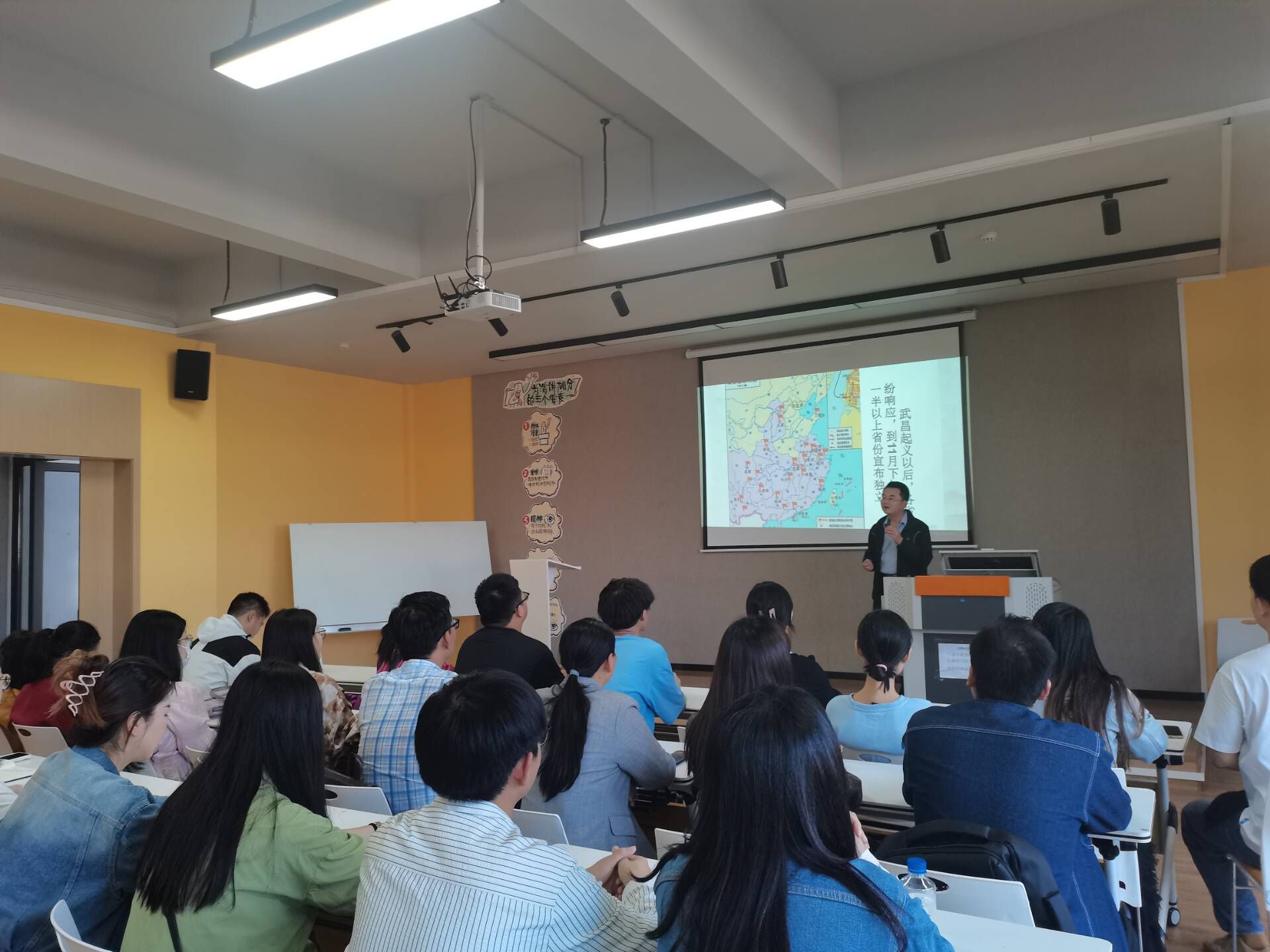 然后,王老师以幽默风趣的语言从辛亥革命历史讲起,以中国共产党党员的“第一颗扣子”为主题,从找准扣眼、扣好扣子、扣紧扣子三个方面展开。他结合中国共产党的诞生和奋斗历程,强调在人生的起点上要找准自己的目标和方向,明确自己的价值观和人生追求;他引用历史事件和人物故事,阐述在人生的各个阶段,都要认真对待每一个选择和决策,确保每一个步骤都符合自己的价值观和人生目标;他结合中国共产党的奋斗历程,讲解在革命和建设的各个时期,中国共产党如何扣紧了民族独立、人民解放和国家富强的扣子,并为之付出了巨大的努力和牺牲,强调在人生的道路上,要始终保持坚定的信念和决心,不断巩固和深化自己的价值观和人生追求,引发了现场师生对于人生道路抉择的思考。