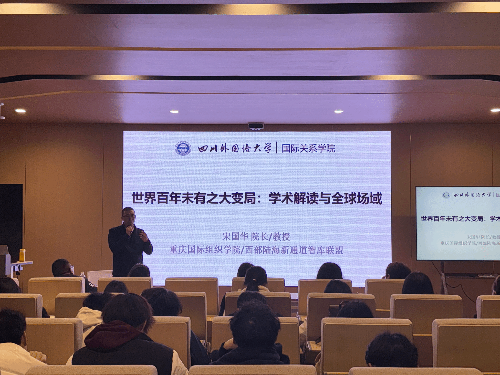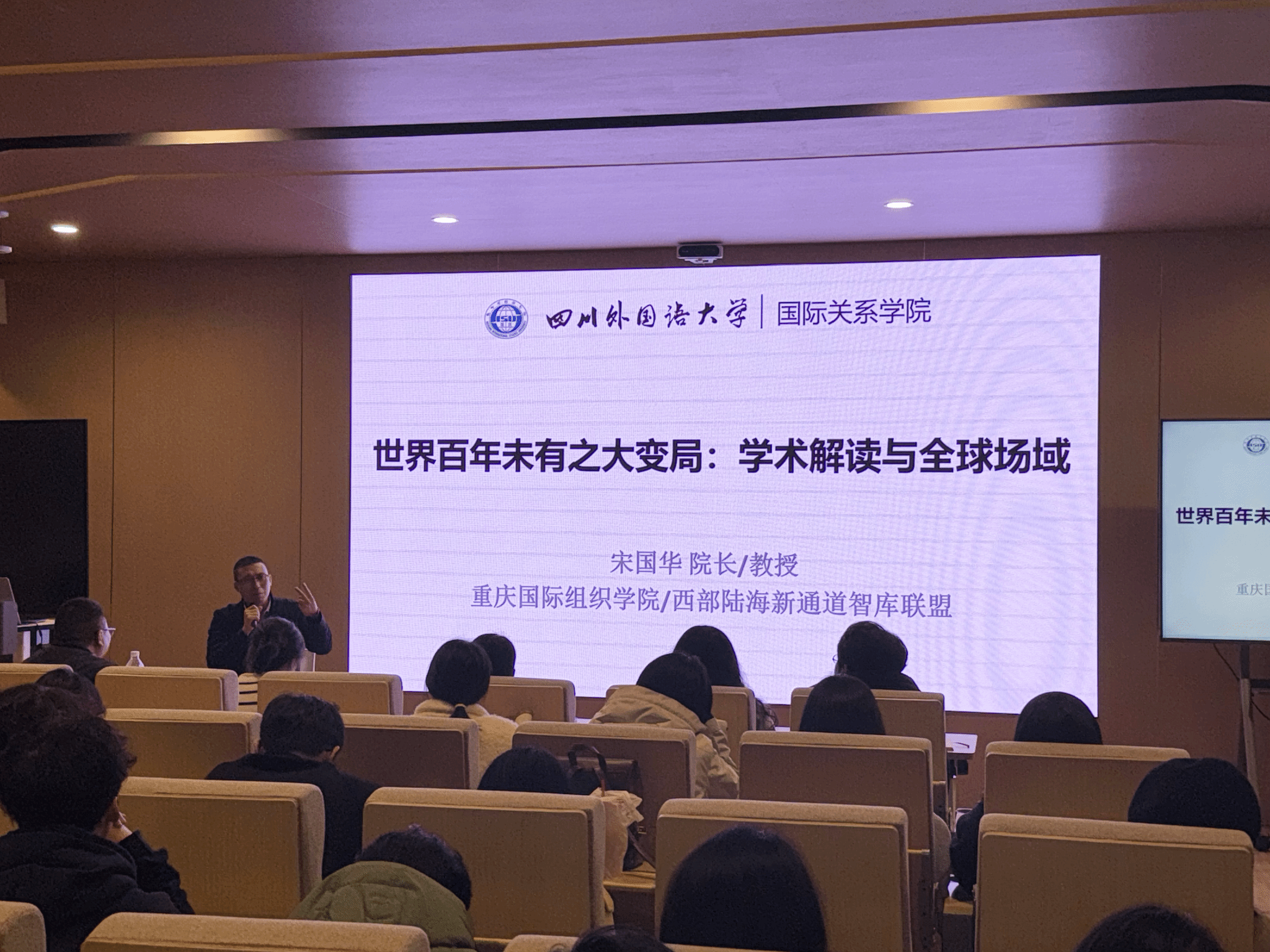 为进一步拓宽教师的国际视野,领悟习近平外交思想的精髓要义。11月22日下午2点30分在天空305多功能厅,马克思主义学院特邀四川外国语大学大学国际关系学院院长宋国华教授于开展专题讲座。本次讲座的主题为“百年未有之大变局:学术解读与全球场域”,讲座由马克思主义学院院长邓燕教授主持,全体教师及学生代表参与。