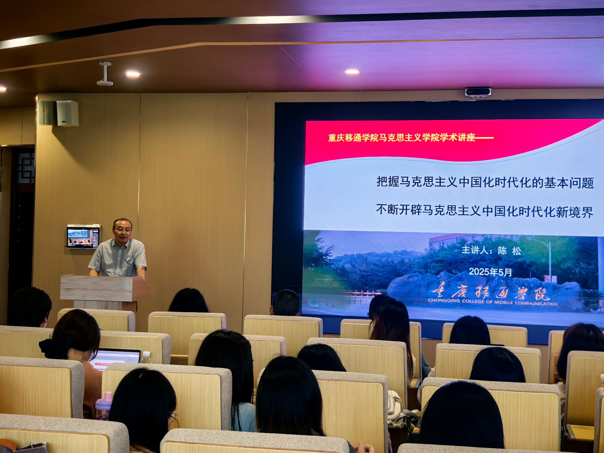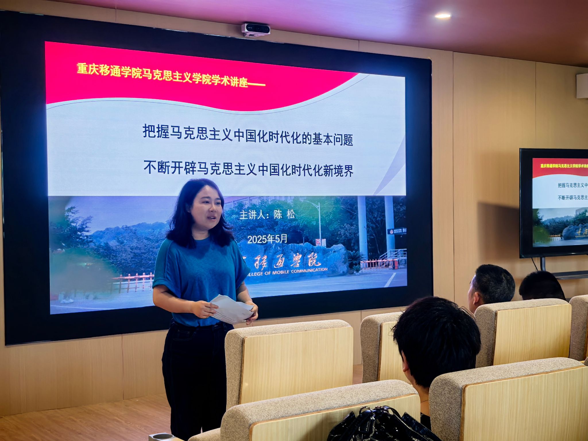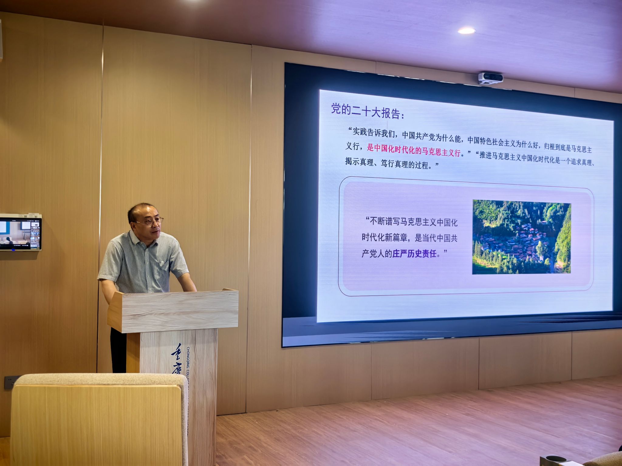 为积极响应学校“教育教学三提三创”主题年活动号召,切实提升马克思主义学院教育教学质量,2025 年 5 月 28 日下午,马克思主义学院特邀重庆工商大学马克思主义学院陈松教授开展专题学术讲座。本次讲座以“把握马克思主义中国化时代化的基本问题,不断开辟马克思主义中国化时代化新境界”为主题。讲座由 “概论” 课教研室主任毕毓璟主持,学院全体教师参会学习。