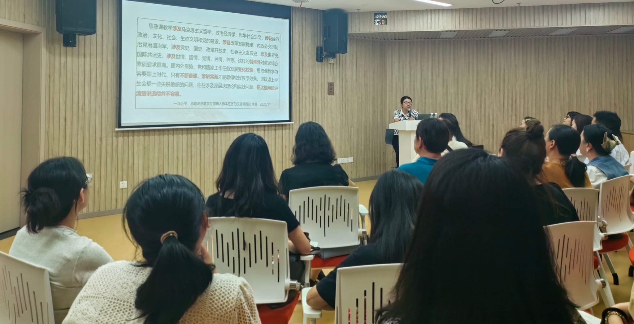 最后,马克思主义学院副院长唐孝庆总结指出,兰桂萍教授的分享既有理论高度又有实践指导价值,为思政课教师破解“讲什么”“怎么讲”的难题提供了清晰路径。在今后教学中要进一步深耕教材、聚焦问题、创新方法,真正让思政课成为学生真心喜爱、终身受益的“金课”。