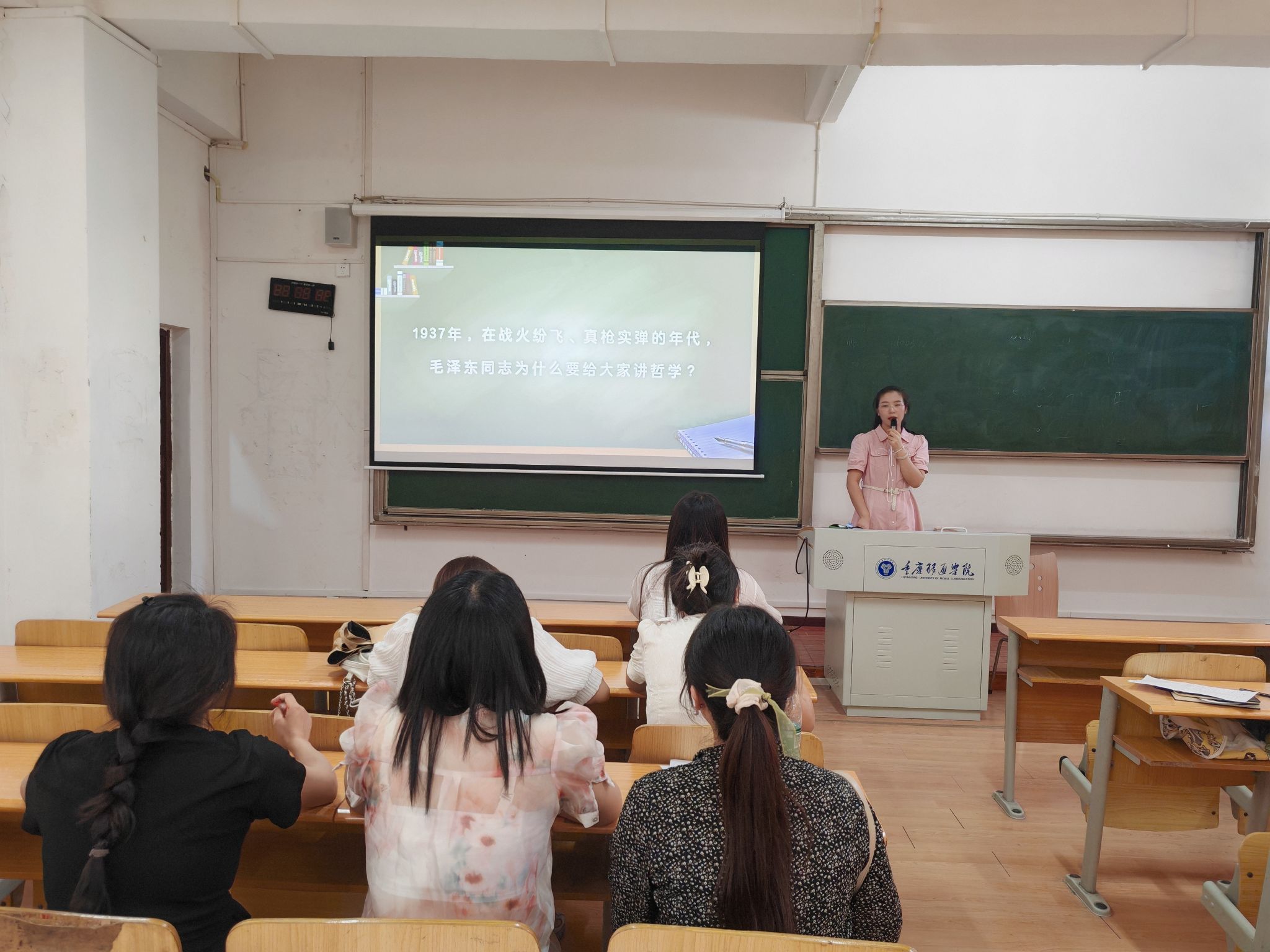 靳银霞老师从写作背景、主要内容、感悟与体会三个方面介绍和分享了毛泽东的《实践论》——这一在中国革命史上具有里程碑意义的哲学著作。靳老师首先介绍了《实践论》的写作背景。1937年,全面抗战烽烟骤起,中国共产党人面临着民族存亡的危机时刻。为了纠正党内教条主义、经验主义错误,推动革命的发展,毛泽东在延安凤凰山的简陋窑洞中,撰写了《实践论》。这部著作不仅是对马克思主义认识论的深刻阐述,更是毛泽东思想形成的重要基石。