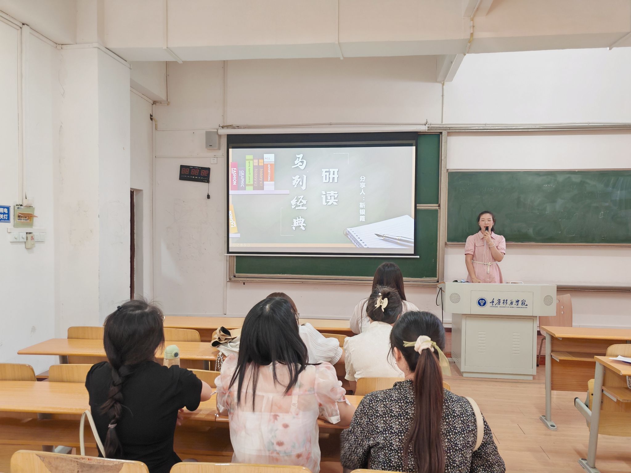 为进一步提升思政课教师的思想政治素质和专业素养,夯实理论功底,建设一支高水平的教师队伍,9月18日下午,马克思主义基本原理课程教学团队开展第20期马列经典著作研读交流会,本次研读分享会由靳银霞老师主讲,团队全体教师参加。