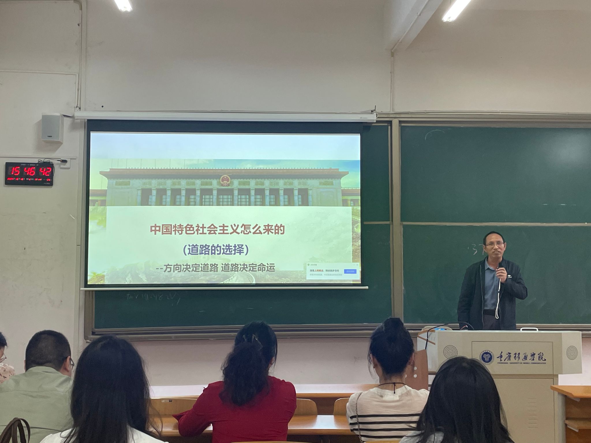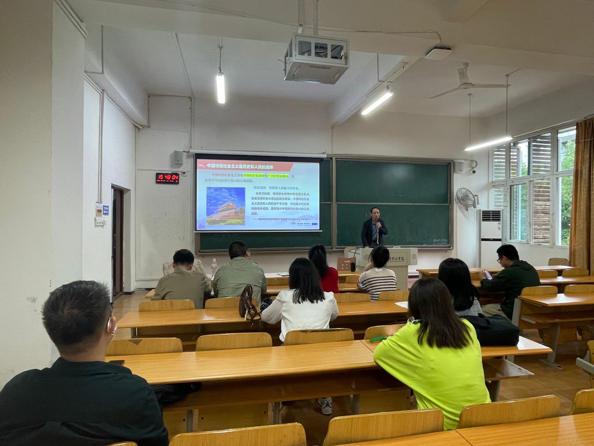 毛老师此次授课以《习近平新时代中国特色社会主义思想概论》课程第一章中“中国特色社会主义怎么来的”为教学内容,从历史源渊和现实基础两个角度,向老师们阐释了中国道路的选择。从历史源远来看,毛老师系统介绍了中国特色社会主义在我国发展的历史是党领导人民奋斗的历史,是我们党历经革命、建设、改革各个时期探索的历史,符合了中国客观的实际,解决了中国面临的问题。从现实基础来看,毛老师全面介绍了中国特色社会主义是党领导人民在付出巨大代价和牺牲中取得的,在中国特色社会主义指引下党领导人民取得了改革开放和社会主义现代化建设的伟大成就,党的十八大以来,党和国家事业发展站上新的历史起点、处于新的历史方位,更好坚持和发展中国特色社会主义是人民的共同选择。