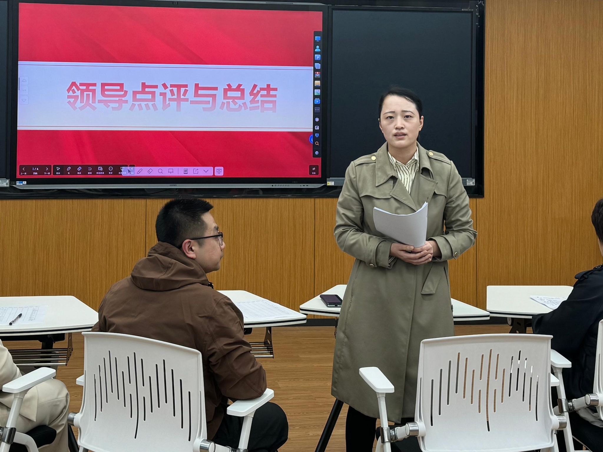 赛后,评委们对本次比赛进行了精彩点评。马克思主义学院院长邓燕高度评价了此次比赛,她指出:“本次教学设计创新大赛主题鲜明突出,教学设计完整,内容丰富多样,展现了我院教师精湛扎实的专业素养和良好的精神面貌。比赛不仅是台上展示,更是反思与成长的过程。我们要深入分析课程特色,综合运用教学策略,不断创新教学方法,提升思政课铸魂育人实效。”