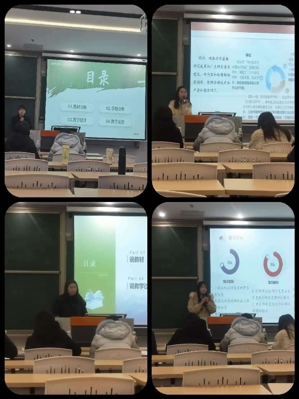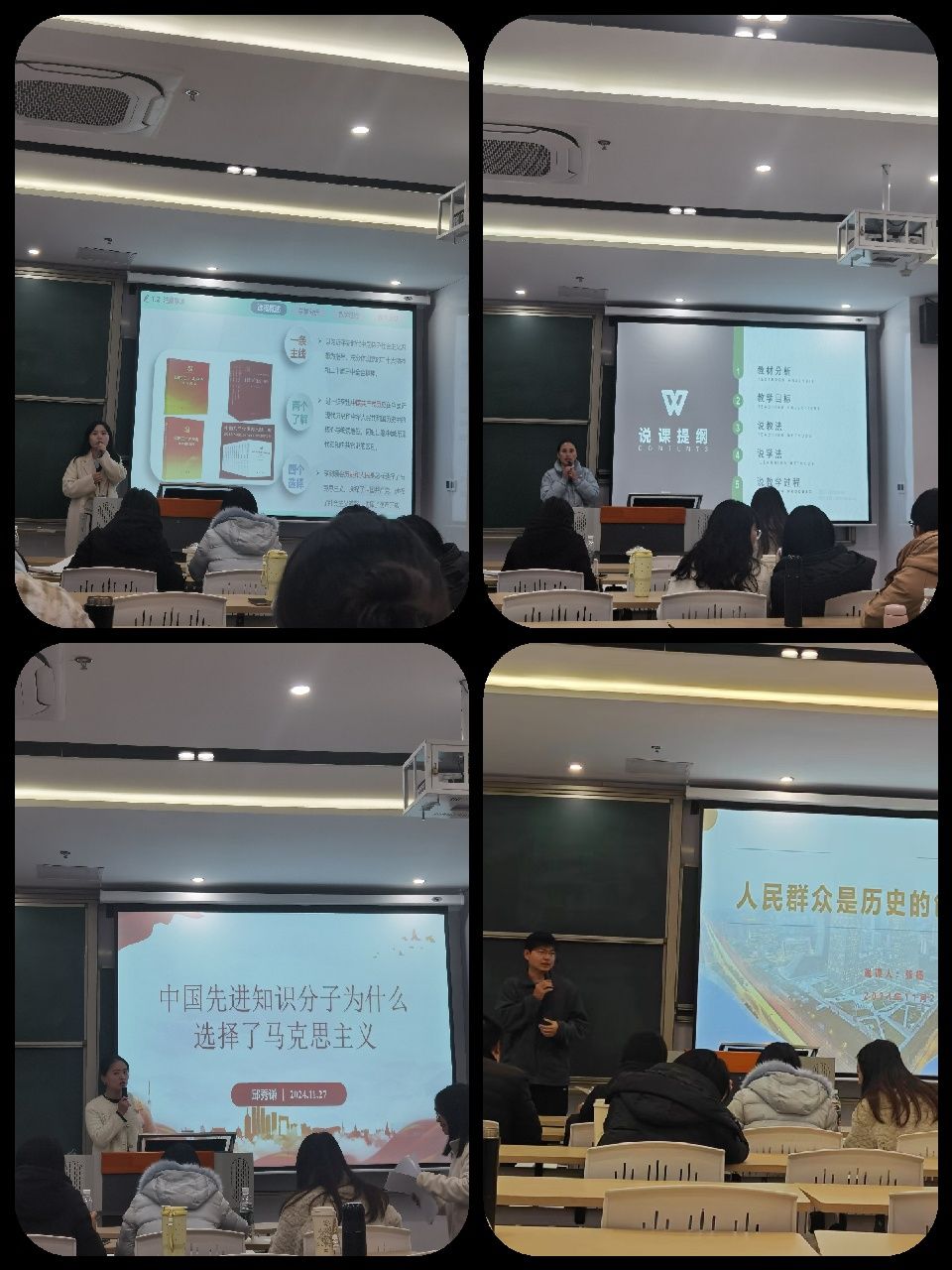 为深入贯彻落实习近平总书记关于教育的重要论述和全国教育大会精神,紧紧围绕新时代新征程教育使命,不断开创思政教育工作新局面,提升思政理论课教育教学质量,提升思政理论课教师教学水平和能力,充分发挥高校思政理论课的主渠道作用。马克思主义学院(綦江校区)于2024年11月27日下午在明善图书馆409举办了思想政治理论课青年教师说课比赛。此次比赛由形势与政策教研室主任王郡主持。担任本次说课比赛评委的有形势与政策教研室主任王郡、习近平新时代中国特色社会主义思想教研室主任吴雪娇、骨干教师李沾意、骨干教师吴如涛,马克思主义学院(綦江校区)全体教师参与。