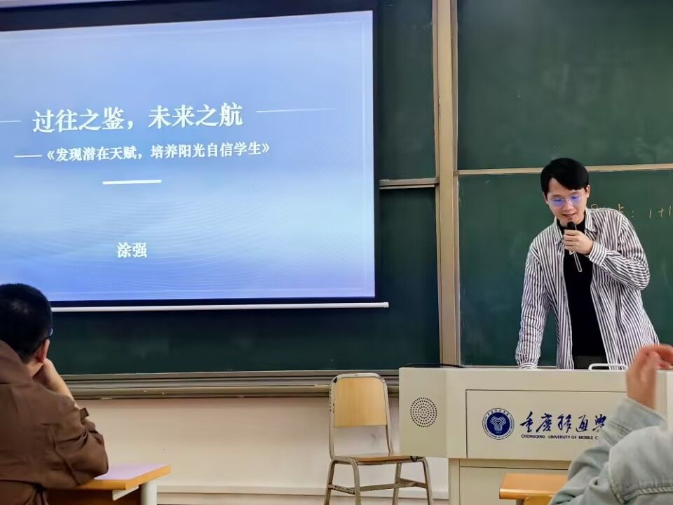 随后,涂老师分享了董事长的《发现潜在天赋,培养阳光自信学生》的讲话,谈到了自己读董事长这篇讲话的感受,他指出作为一名青年老师,我们不仅要教好书,还要学会发现学生潜能,学会与学生和谐相处。第一,老师要热爱自己的教育事业,只有热爱自己的事业,做事才会主动、才会有激情,才能激发自己的知识和能力,在教学、生活上,才会愿意帮助学生,引导学生前行,培养学生阳光自信。第二,老师要有教育情怀,要多关爱学生。教育是一个双向的过程,我们教育了学生,关爱学生的成长,其实学生成长和发展也教会了我们很多东西,要懂得善于分享和交流,多去观察,多去挖掘,在发展中完善自己,在相处中成长自己。