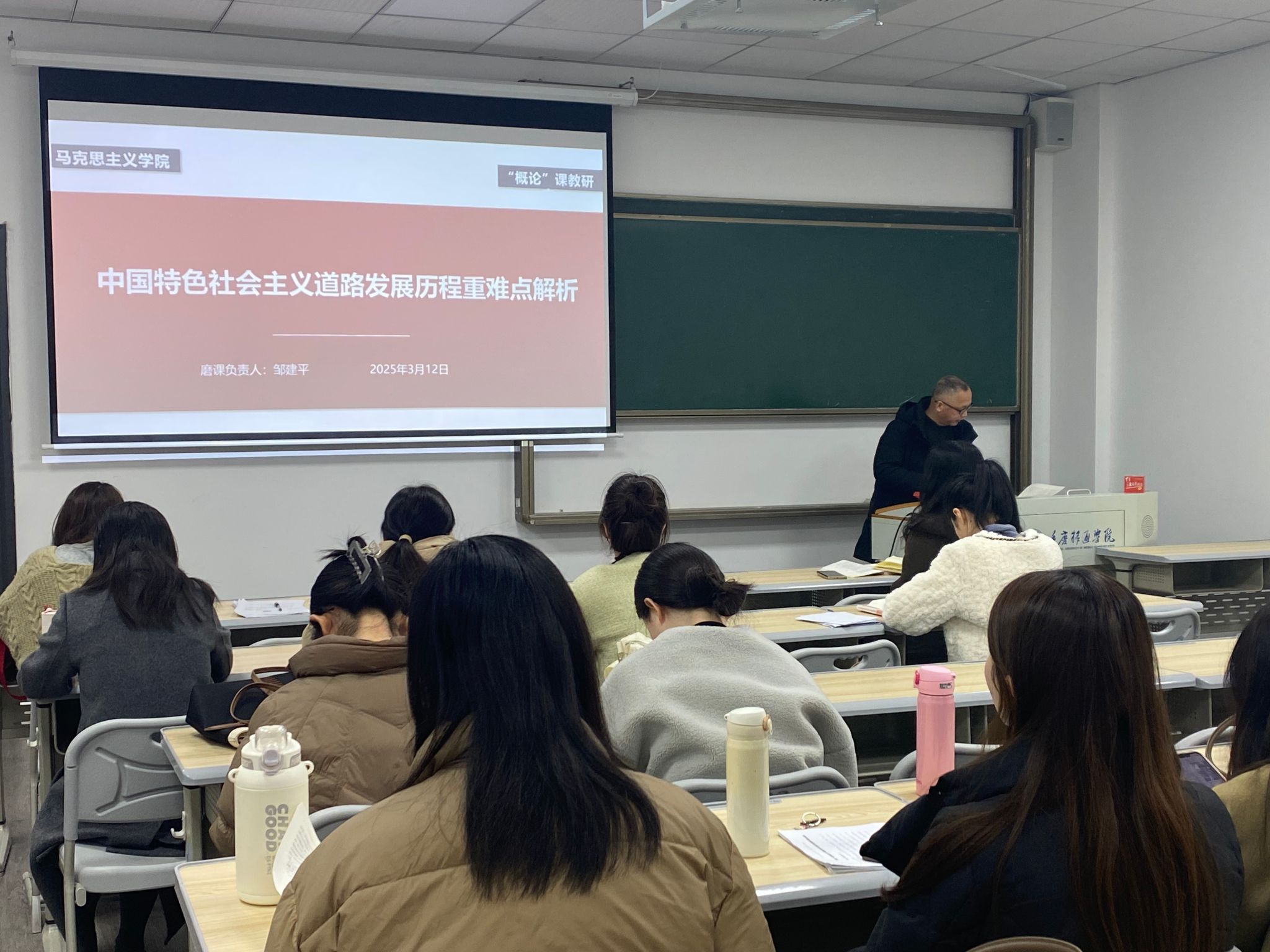 3月12日下午,马克思主义学院“概论”课教研室全体教师在4105开展《习近平新时代中国特色社会主义思想概论》课程第一章教学磨课活动。本次活动由邹建平老师主讲。