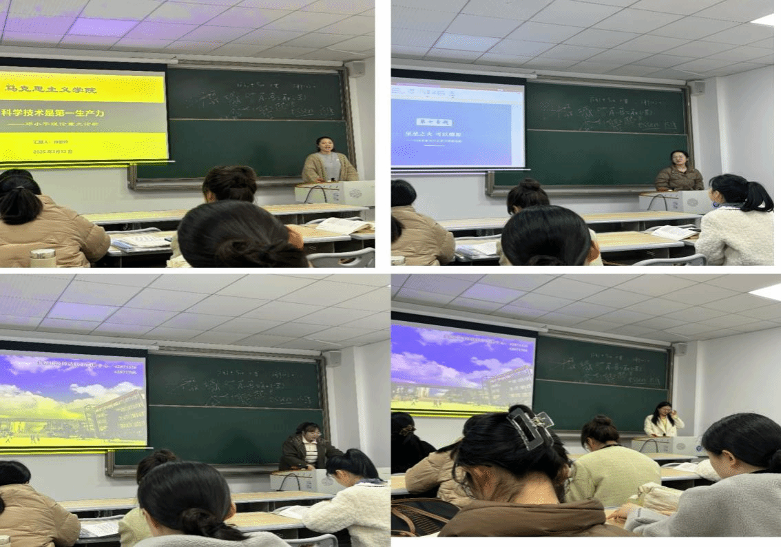 接着,7 位参赛教师严格依照竞赛要求,分别进行了竞赛赛前展示。肖爱玲老师以 “科学技术是第一生产力 —— 邓小平理论的重大论断” 为主题,深入浅出地剖析理论内涵;张慧婷老师的 “星星之火,可以燎原 —— 中国革命为什么要开辟新道路”,生动讲述历史抉择背后的深刻逻辑;袁明君老师聚焦 “中国工业化道路的探索”,梳理发展脉络;杨文君老师阐释 “两手抓” 理论,凸显理论的实践价值;王成宇老师围绕 “马克思主义中国化” 展开,探寻思想演进轨迹;王佳丽老师解读 “毛泽东思想的萌芽”,挖掘理论起源;廖洪瑶老师论述 “中国特色社会主义是历史和人民的选择”,回溯伟大征程。