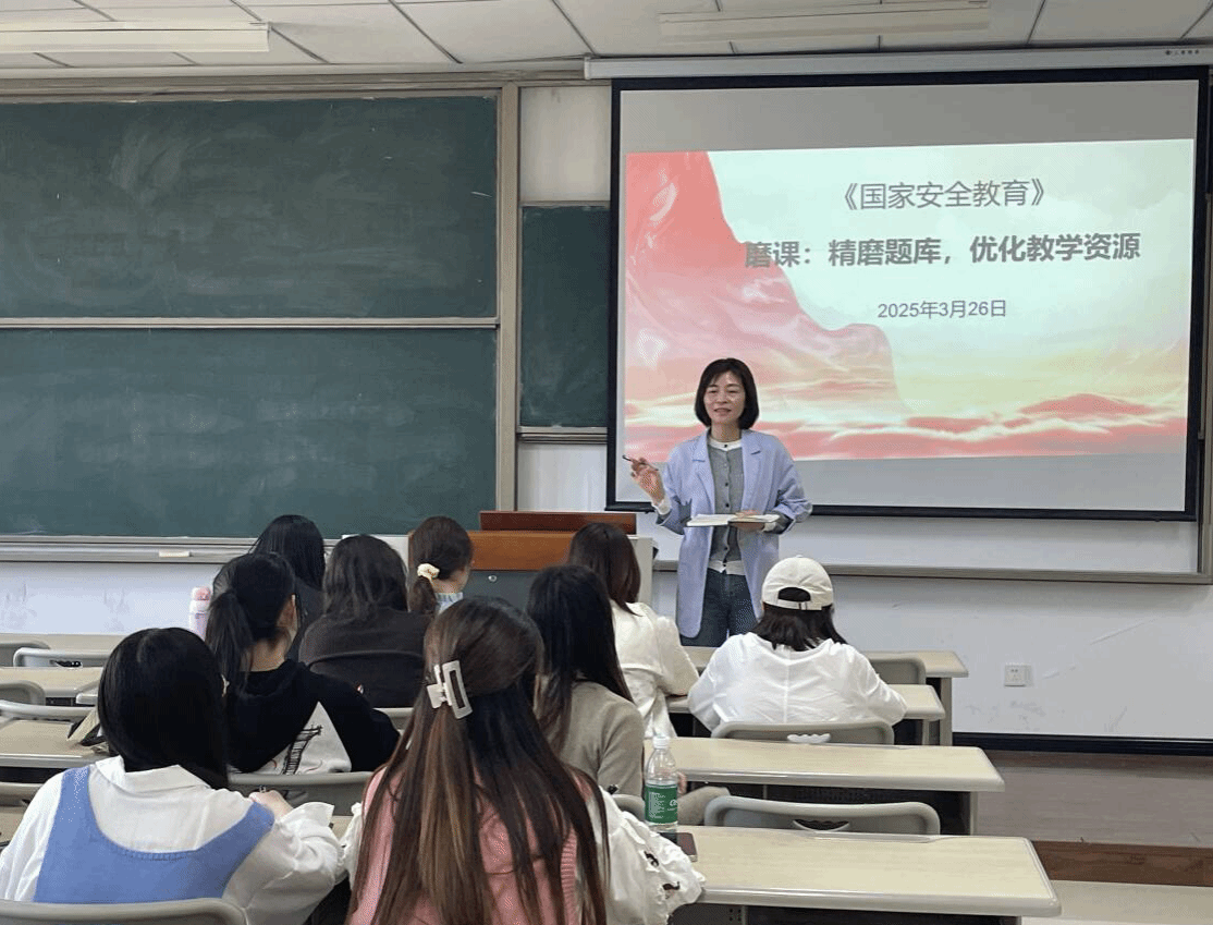 为优化教学资源,推进课程建设,2025年3月26日下午,《国家安全教育》课程组在9214教室开展"精磨题库,优化教学资源"专题磨课活动。本次磨课由陈静老师主持,课程组全体教师参与,通过系统规划、任务分解与经验共享,着力打造高质量教学资源库。