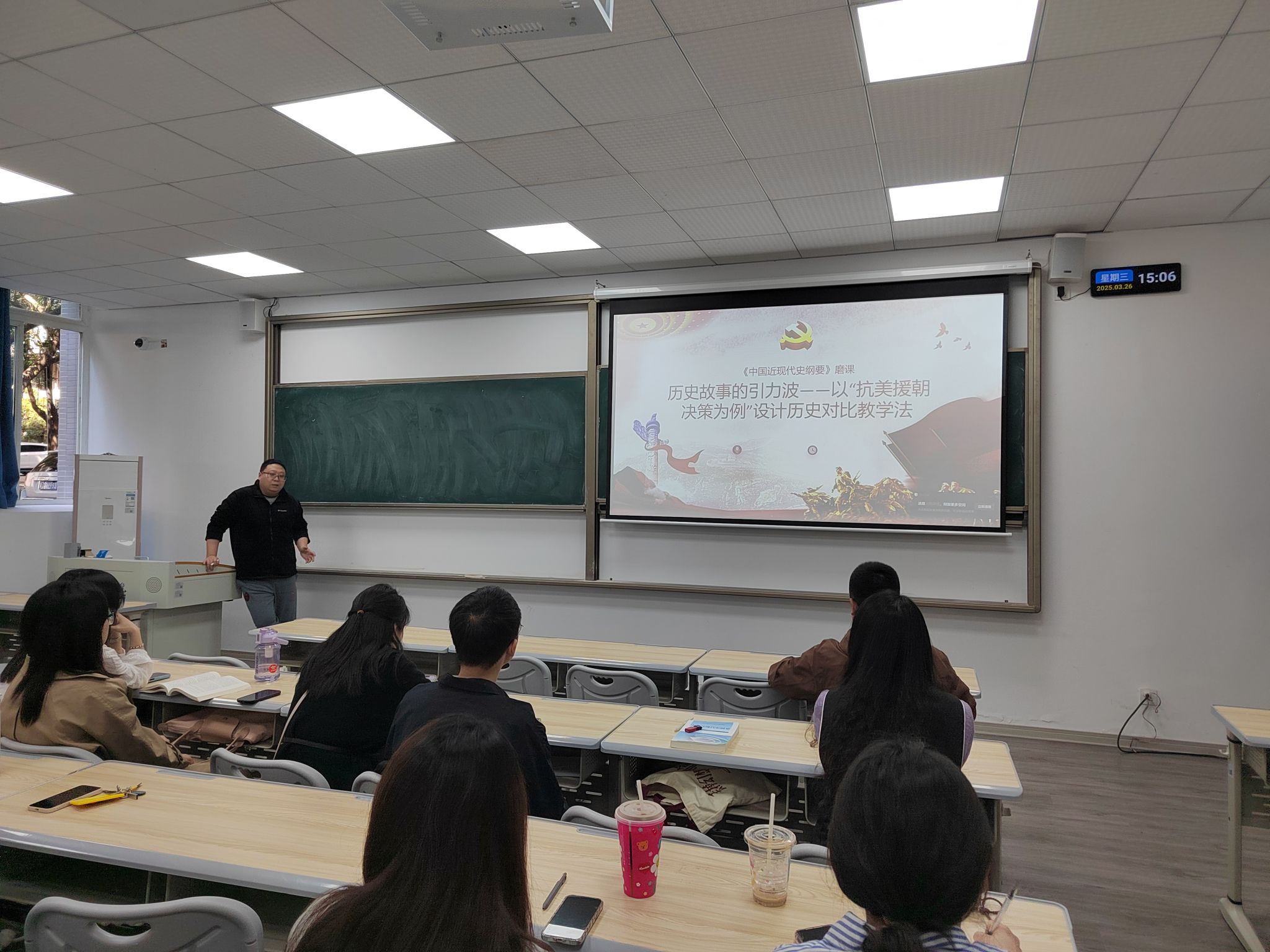 为夯实团队教师教学基本功、创新思政课教学方法,3月26日下午,马克思主义学院《中国近现代史纲要》课程教学团队开展专题磨课活动。本次活动以“以研促教、以磨提质”为宗旨,由团队带头人靳银霞老师主持,曾林老师以“历史故事的引力波——抗美援朝决策的对比教学实践”为主题进行教学展示,深入探讨历史比较法在思政课堂中的创新应用。