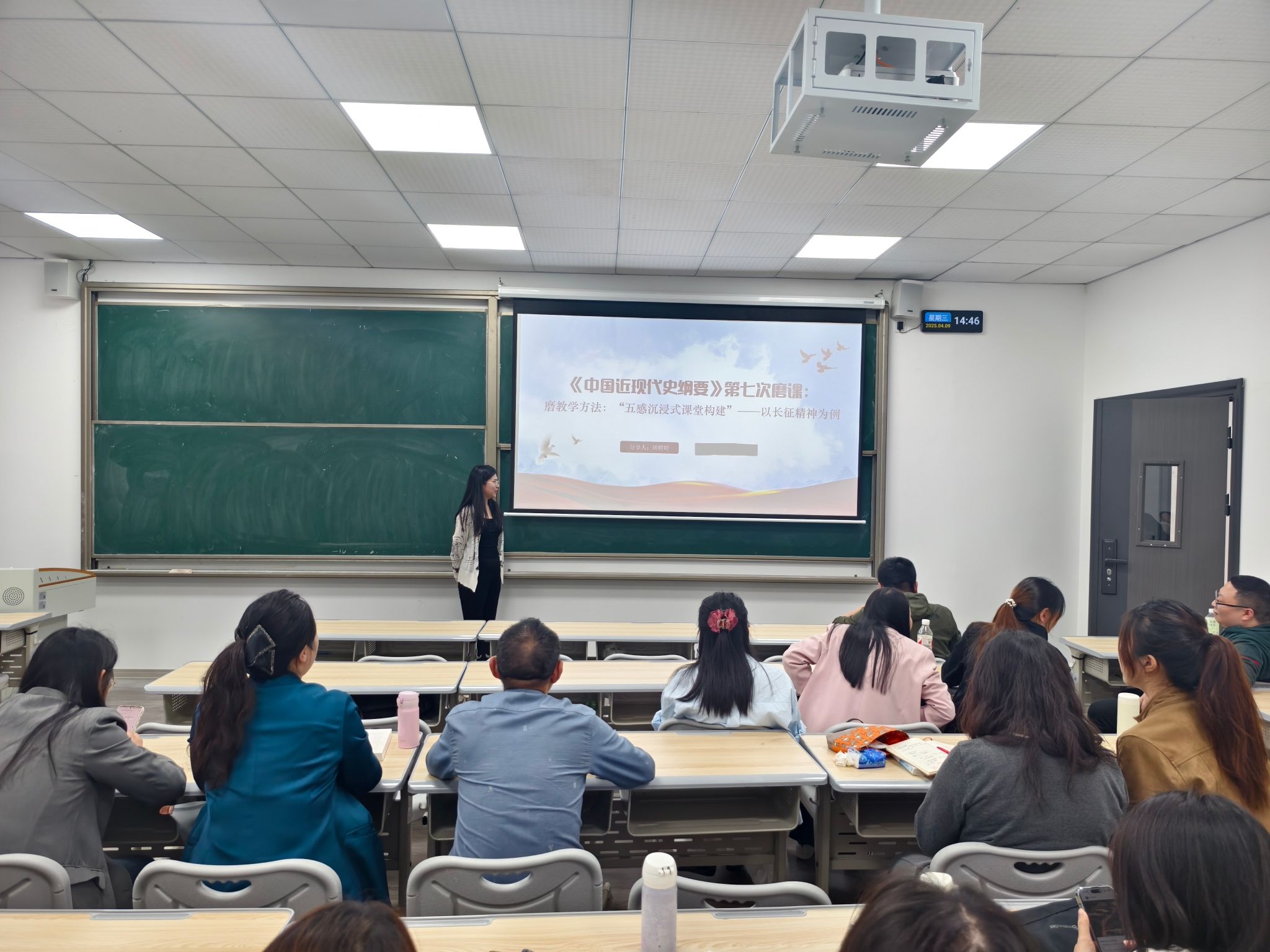 为深化课堂教学改革,提升思政课育人实效,4月2日下午马克思主义学院《中国近现代史纲要》课程教学团队在4101教室开展第七次专题磨课活动。本次活动田婷婷老师以“五感沉浸式课堂”构建为主题,聚焦沉浸式教学模式探索,结合长征精神教学为例进行了教学展示。