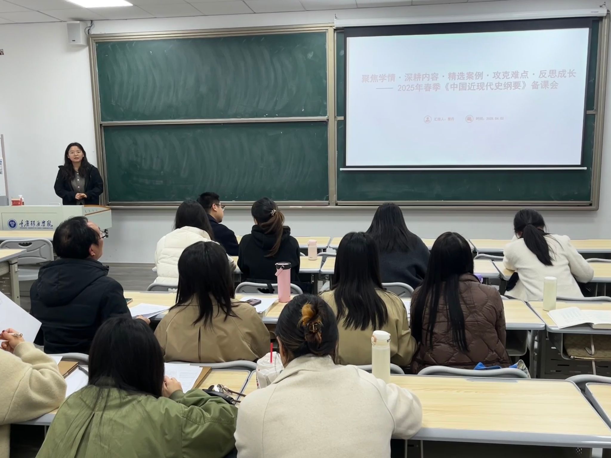 为进一步提升教研室思政课教师的教学水平,拓展教学视野、更新教学理念、创新教学手段、丰富教学形式,全面提高思想政治理论课的教学质量,4月2日下午3点,马克思主义学院中国近现代史纲要教研室齐聚4101教室,开展了《中国近代史纲要》课程培训心得分享会。此次活动由曹丹老师进行介绍,教研室主任李阳老师主持。