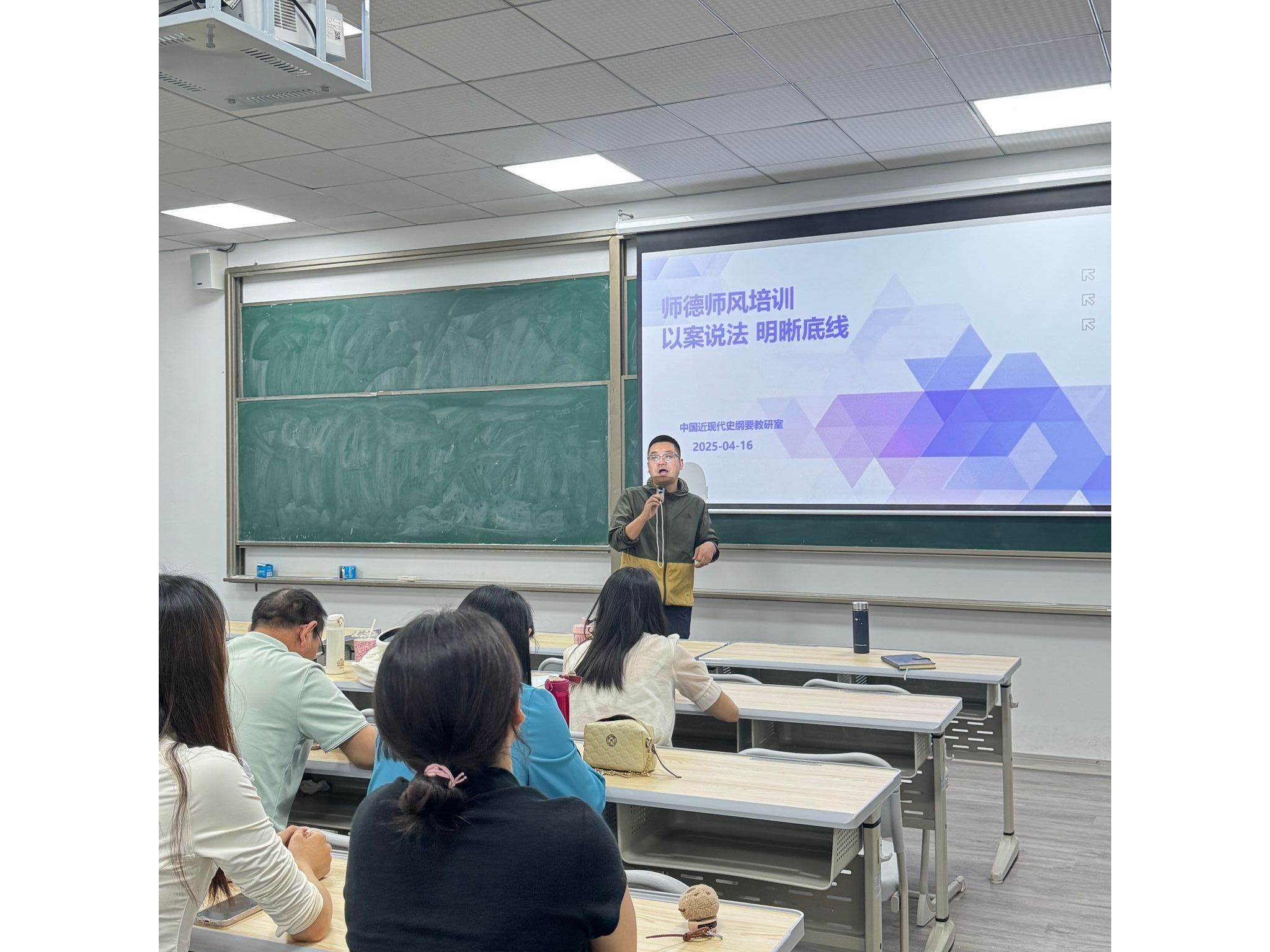教育之魂,系于师德师风。为深入贯彻新时代高校教师职业行为准则,筑牢师德师风建设根基,4月16日下午15时,马克思主义学院中国近现代史纲要教研室围绕“教育教学三提三创”主题年活动,开展“以案说法、明晰底线”师德师风专题学习会。教研室主任李阳老师聚焦典型案例剖析与职业行为规范,为教研室全体教师上了一堂生动的警示教育课,进一步强化了教研室教师队伍的纪律意识与责任担当。