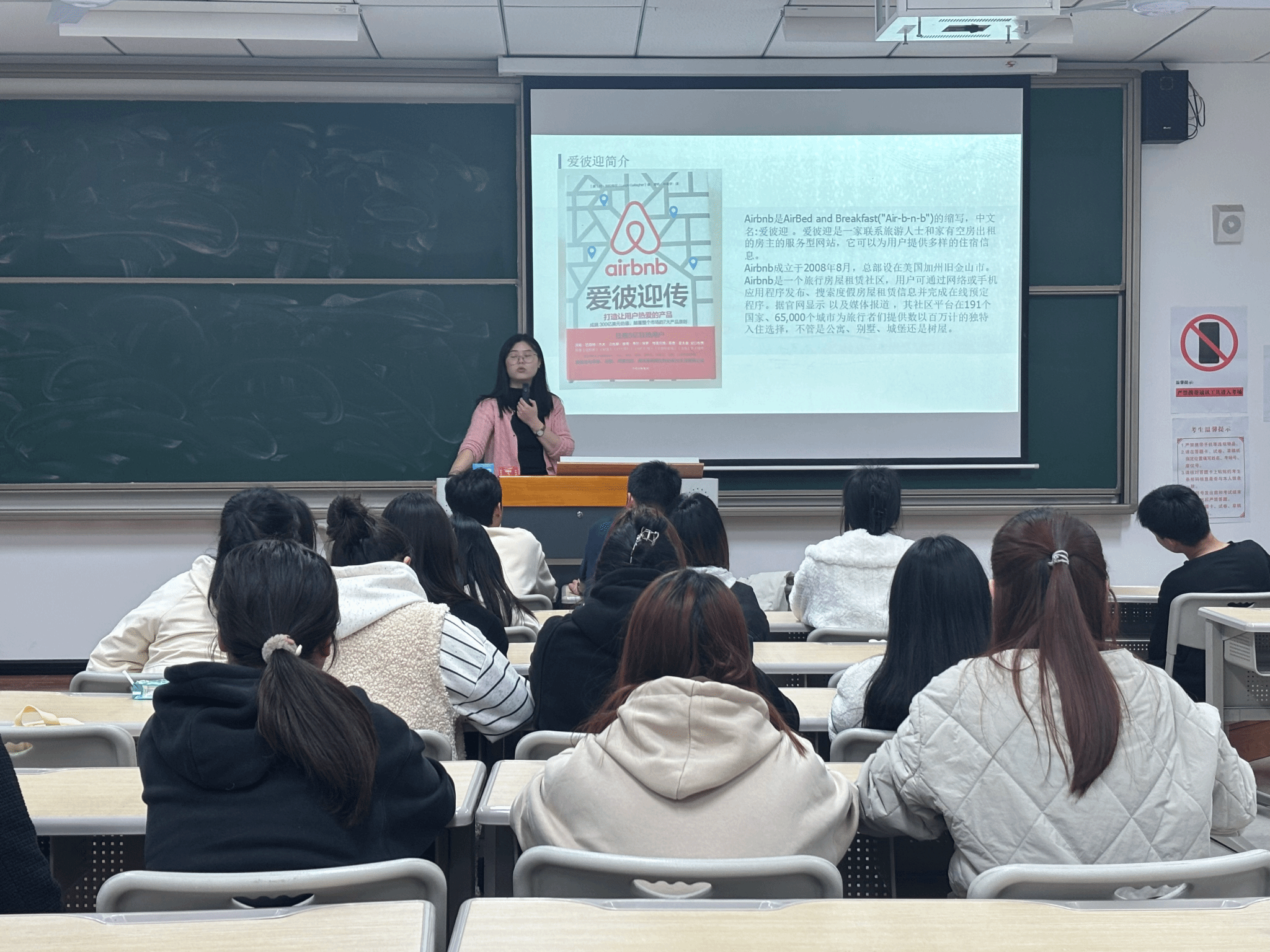 张璐老师则从马克思主义视角解读了《爱彼迎传》中共享经济的社会价值。她指出,Airbnb的成功不仅在于商业模式创新,更在于其构建了跨越文化壁垒的社区网络。张老师结合“人类命运共同体”理念,引导同学们深入思考如何在技术高速发展过程中通过创新创造更多社会价值。就像Airbnb的发展,它敏锐捕捉到人们对个性化住宿和闲置房源利用的需求,通过创新的共享模式,搭建起房东与房客沟通的桥梁。