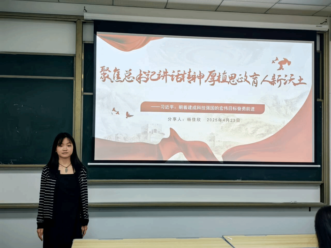 为深入贯彻习近平总书记关于科技创新的重要讲话精神,推动思政课程与国家科技战略深度融合,助力青年学子树立科技强国之志,2025年4月23日,马克思主义学院《中国近现代史纲要》课程教学团队成功举办了第13讲“菁英讲堂”活动。本次活动由杨佳欣老师主讲,主题聚焦“朝着建成科技强国的宏伟目标奋勇前进”,团队全体教师积极参与,共同探讨思政课程与国家科技战略深度融合的新路径。