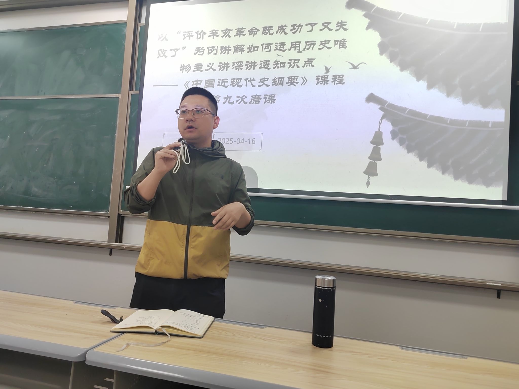 为贯彻落实学校“教育教学三提三创”主题年活动方案,推进教学改革,提升教学质效,2025年4月16日下午,马克思主义学院《中国近现代史纲要》课程教学团队在4103教室举行第九次磨课活动。本次磨课由教学团队带头人靳银霞老师主持,课程负责人李阳老师围绕“辛亥革命的‘双重性’评价”这一主题展开精彩的教学展示与研讨交流。