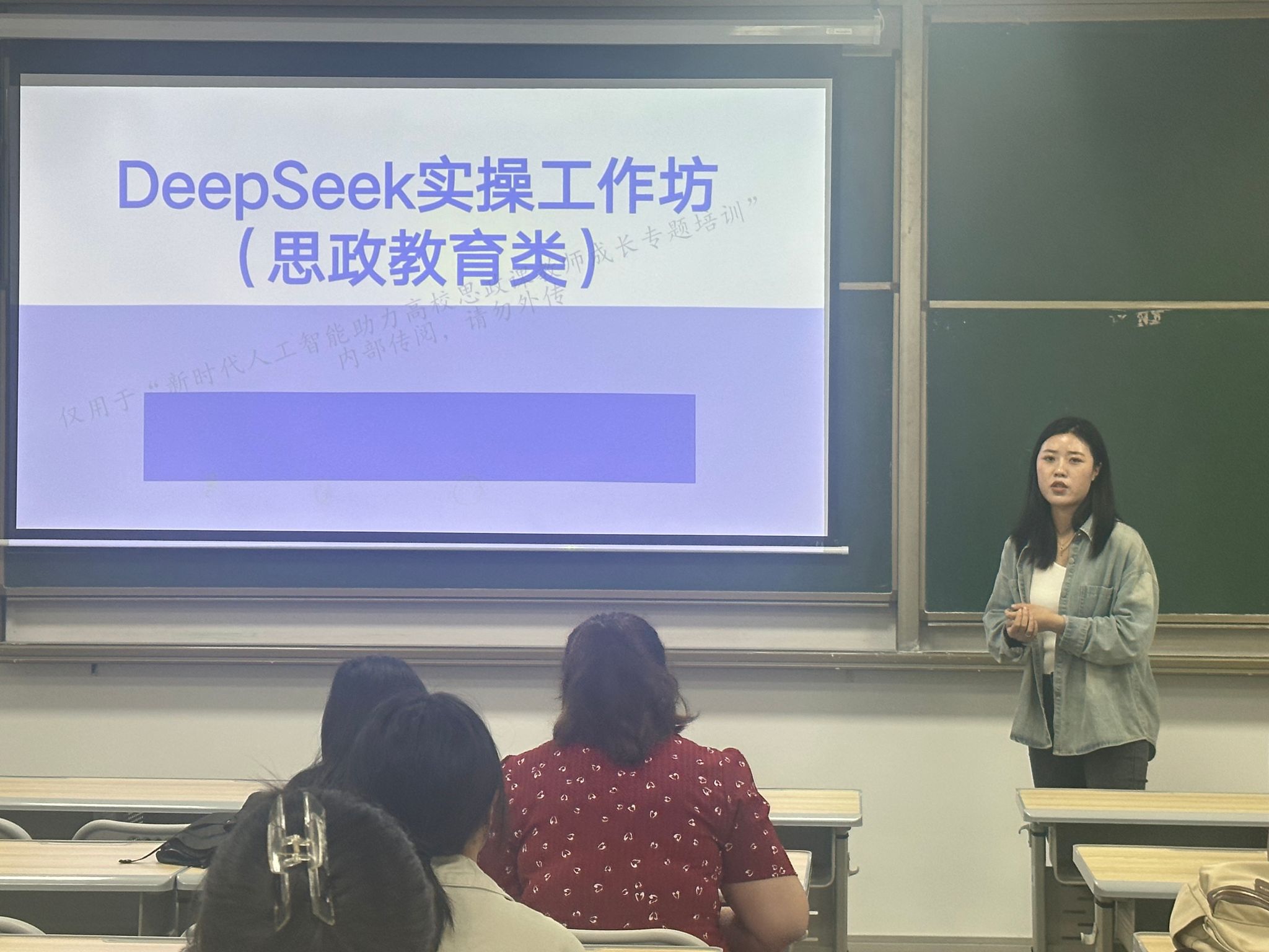 活动以“技术赋能・经验共享・教学革新”为目标,开启 “理论讲解 + 实操演示 + 经验分享” 的转训模式。廖洪瑶老师作为转训主讲人,率先带来《Deepseek 实操工作坊》专题分享。她以“从技术认知到教学落地”为脉络,系统介绍 Deepseek 的功能特性,并通过实时操作演示,生动展示该工具在课程设计、教学资源整合、课堂互动优化及学情分析等教学环节的应用路径。廖老师的分享,让在场教师直观感受到人工智能对教学流程优化的显著成效,为教师们打开技术赋能教学的新思路。