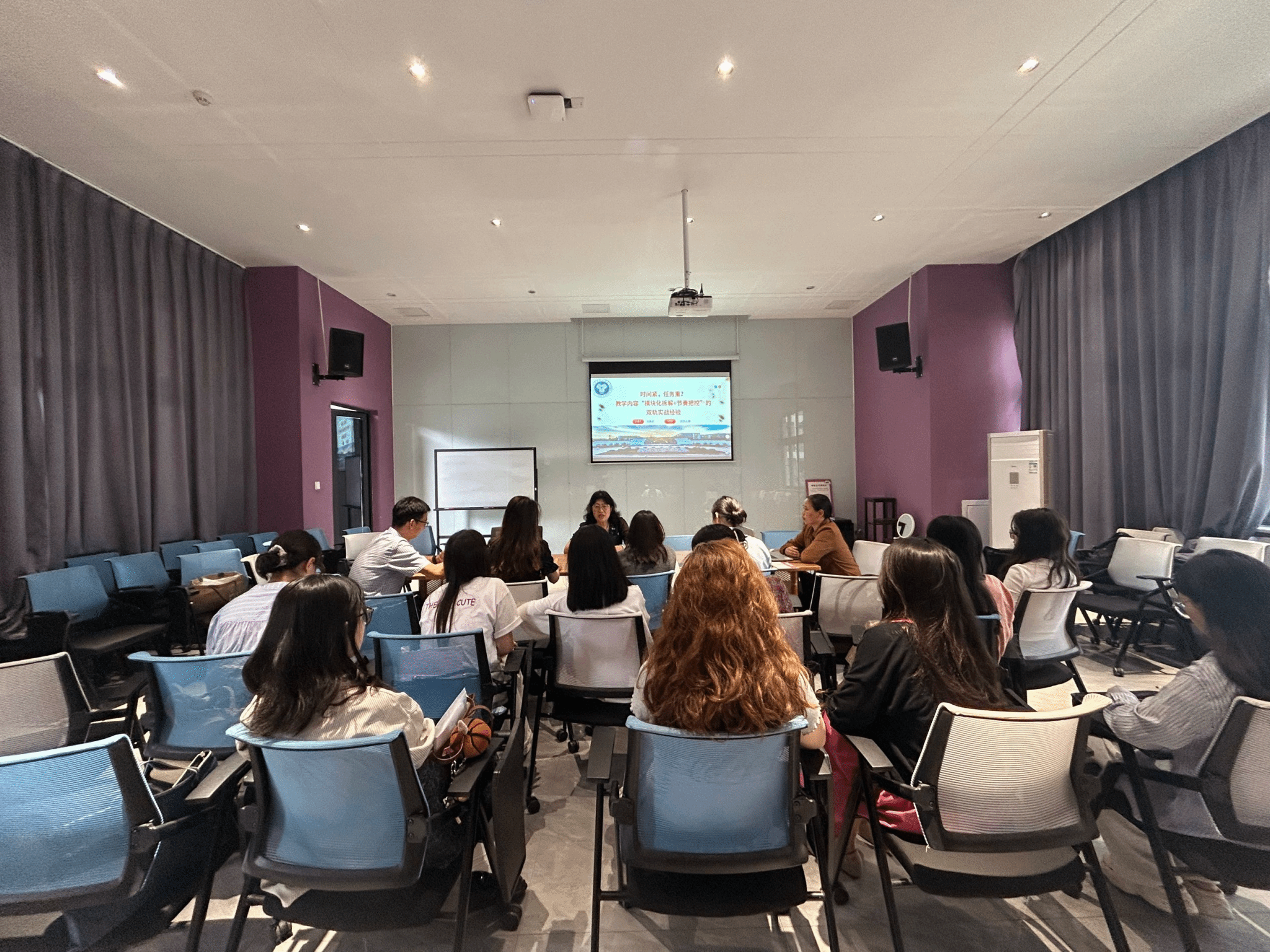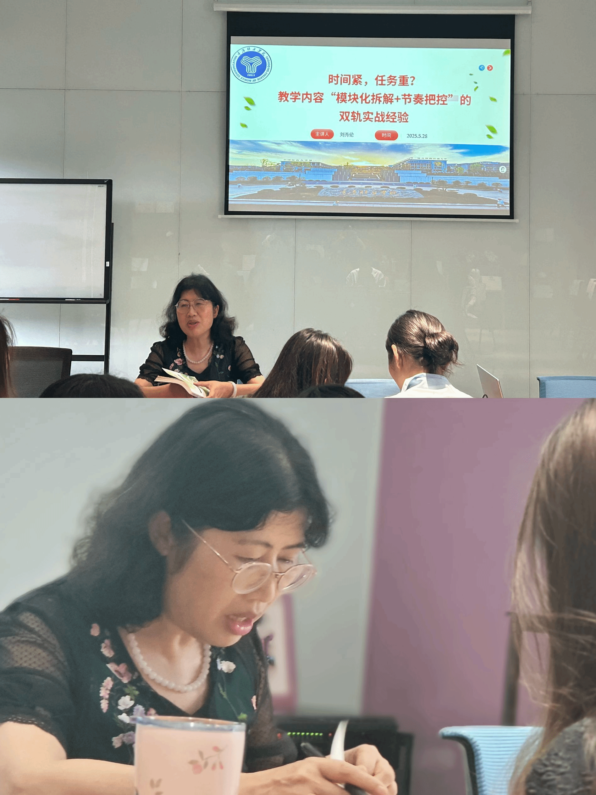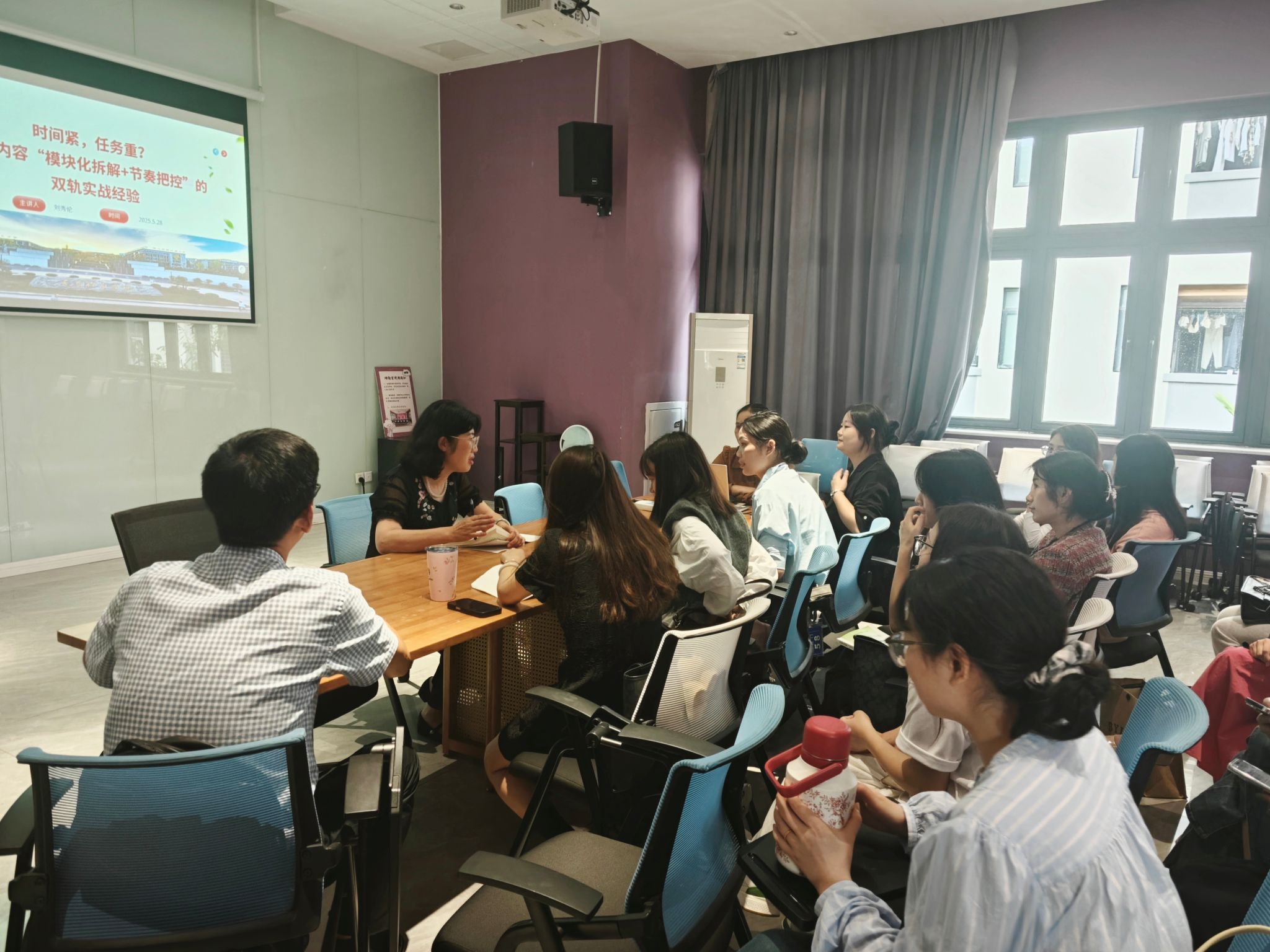 随后,刘教授就如何更好管理课堂,如何与学生有效沟通等分享了自身经验,并与全体老师展开了热烈讨论。刘教授指出,思政课教师不仅要传授知识,更要成为学生的引路人,严格管理课堂,同时要看到个体的差异性,理解学生,多与学生沟通。最后,刘教授还分享了教改课题撰写的技巧与经验。她强调,思政课教师不能闭门造车,要想提升教研水平,在申报教改课题的时候一定要紧跟时代步伐,与最新的政策文件相结合。同时,她鼓励青年教师积极申报教研课题,将教学实践转化为研究成果,实现教研相长。