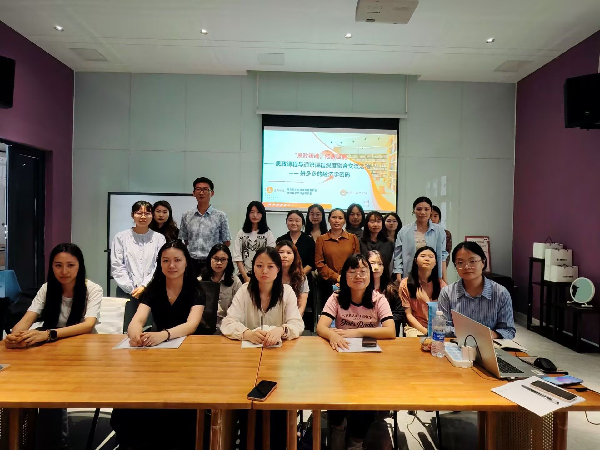 随后,通识教学部《生活中的经济学》课程组负责人王诗源老师和马克思主义基本原理教研室主任覃志蓉老师分别对拼多多背后的经济现象进行了经济学解构和思政解码。王诗源老师指出,拼多多利用大数据分析精准预测消费者需求,实现了供应链的快速响应和高效运作,并通过博弈论分析用户行为与平台策略,展现了其在市场中的精妙布局和策略调整能力。覃志蓉老师则从马克思主义视角出发,对拼多多现象进行了深度价值挖掘。她强调,数字时代劳动异化新形态也在拼多多物流体系中显现,如快递员的工作强度增加,劳动权益受到一定影响等,这引发了关于社会价值与经济价值平衡的思考。最后,参会老师就课程建设、教师发展等展开了激烈的讨论,并对未来开展“双师课堂”等进行了展望,推动融合向纵深发展。