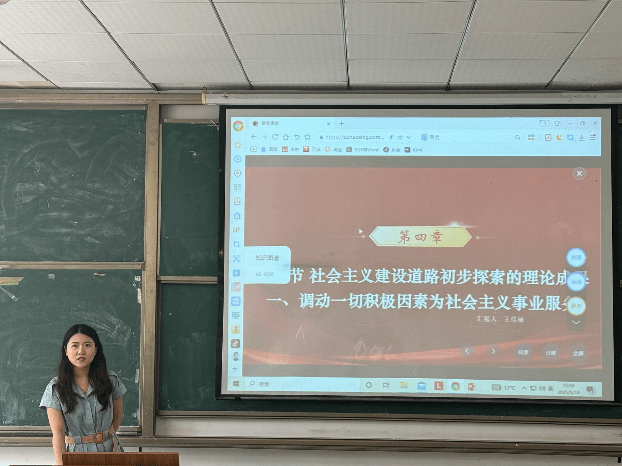 为全面深化大规模课堂教学改革,推动教学理念、内容、模式、方法与手段的一体化创新,切实提升教师课堂教学能力与教学质量,马克思主义学院“概论”课教研室于2025年5月14日在5105教室开展“教法创新・数智赋能:教学一体化平台赋能课堂教学应用展示”系列磨课活动。新商科教学部赵艳老师作为校磨课指导专家莅临现场指导。