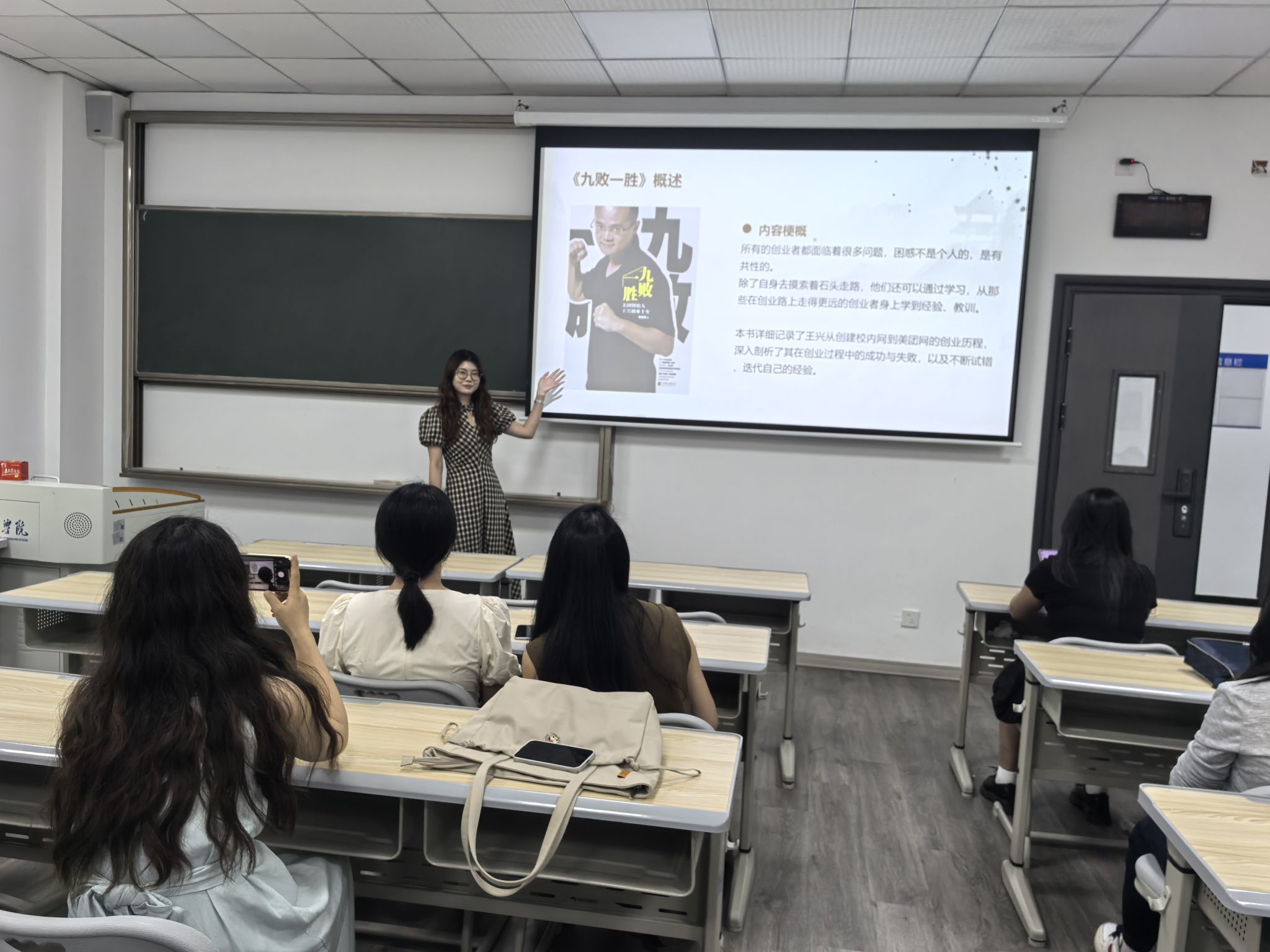 接着,王成宇老师则以《九败一胜:美团创始人王兴创业十年》为镜,映照出创业征途的荆棘与荣光。“王兴‘九败一胜’的历程,是认知不断迭代、韧性持续锻造的生动写照”。这场关于“失败价值”的分享深刻启发着教师们:教学探索与个人发展皆非坦途,唯有接纳试错、在反思中持续探索,方能抵达专业精进的“一胜”巅峰。