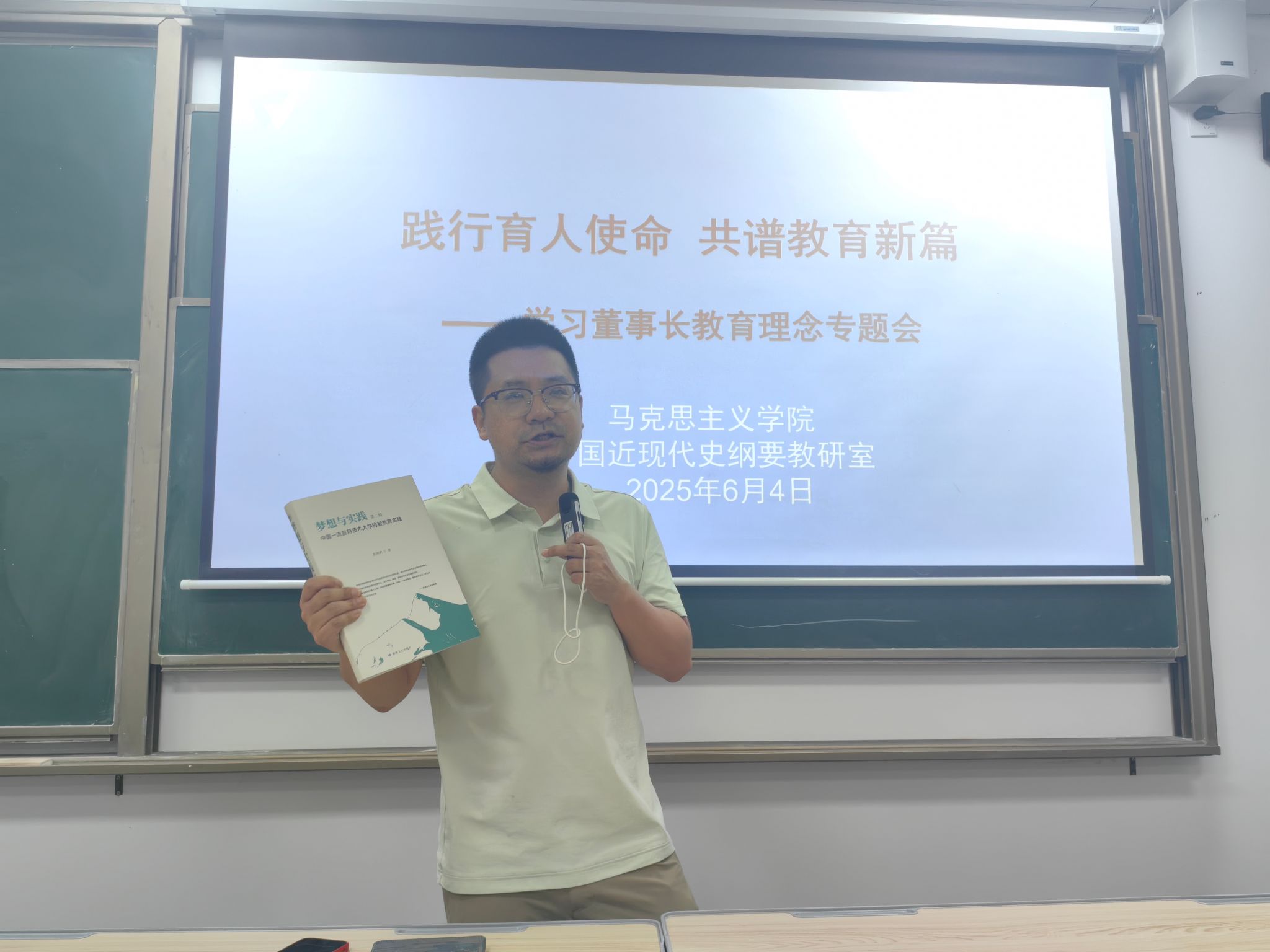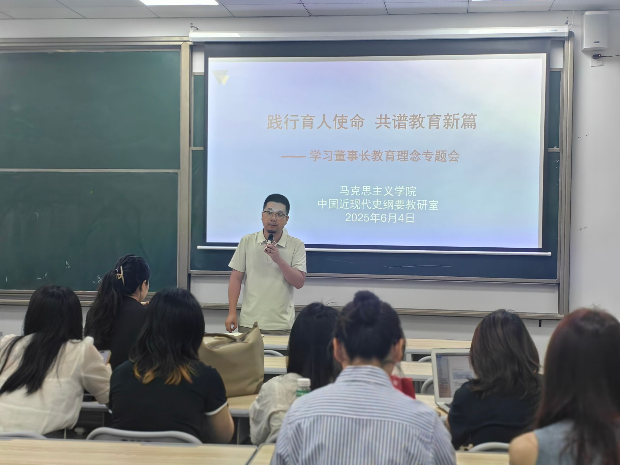 为深刻领会并践行彭鸿斌董事长教育理念的核心要义,引导教研室各教师将育人使命内化于心、外化于行,全面提升新时代学生成长引路人的综合素养。2025年6月5日下午2点,马克思主义学院中国近现代史纲要教研室在4103召开了学习彭鸿斌董事长教育理念专题会。此次会议由中国近现代史纲要教研室主任李阳主持,教研室全体教师参与。