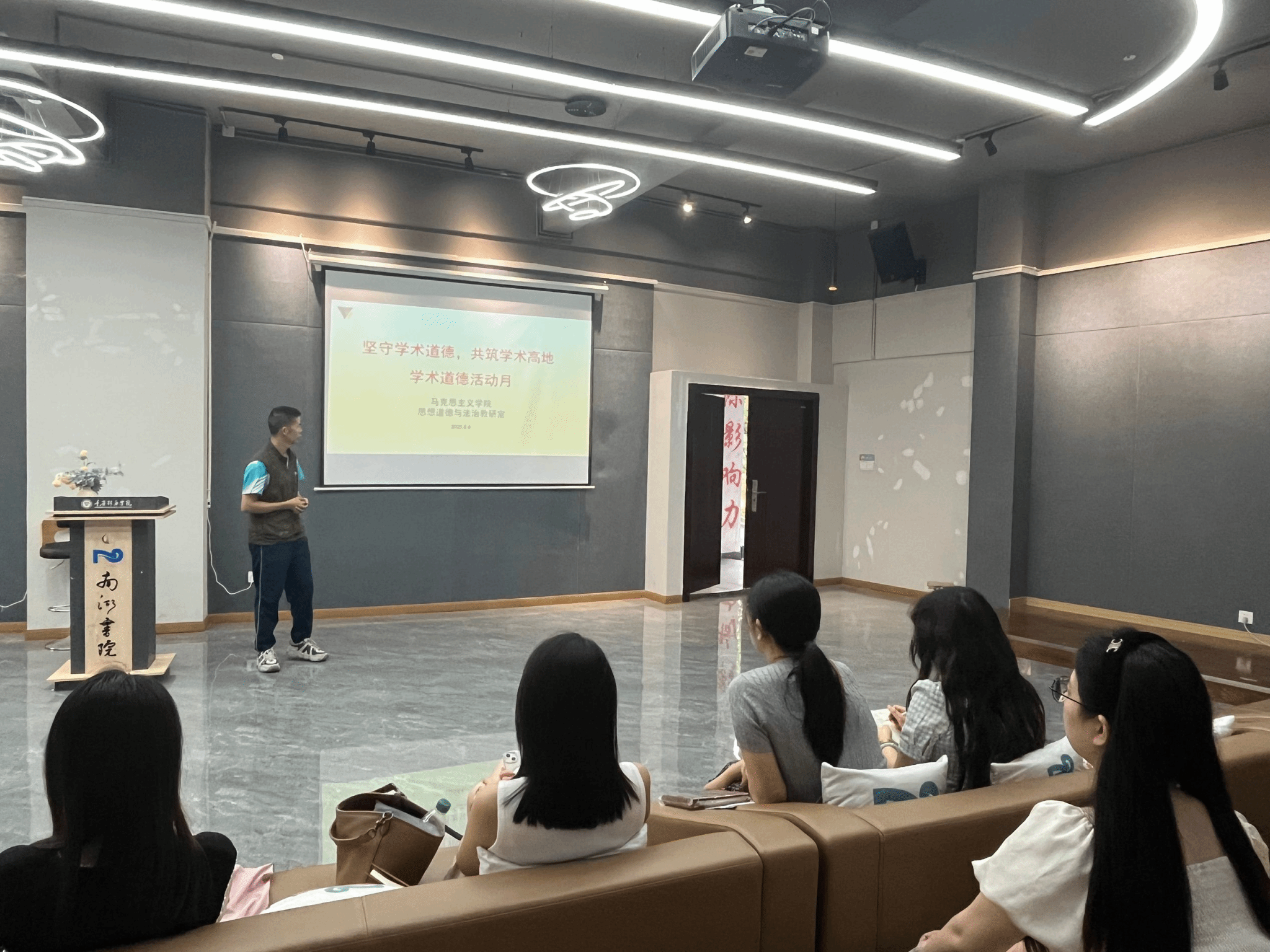 杨老师还从马克思主义理论视角出发,讲到:“马克思主义理论不仅是指导我们认识世界和改造世界的科学真理,其严谨的治学态度和实事求是的精神内核,更为学术道德建设提供了根本遵循。坚守学术道德,是每位哲学社会科学工作者践行初心使命的必然要求。”